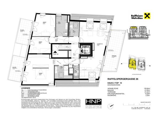 Das exklusive Penthouse bietet mit 155,82 m² auf einer Ebene großzügigen Wohnkomfort und eine durchdachte Raumaufteilung.