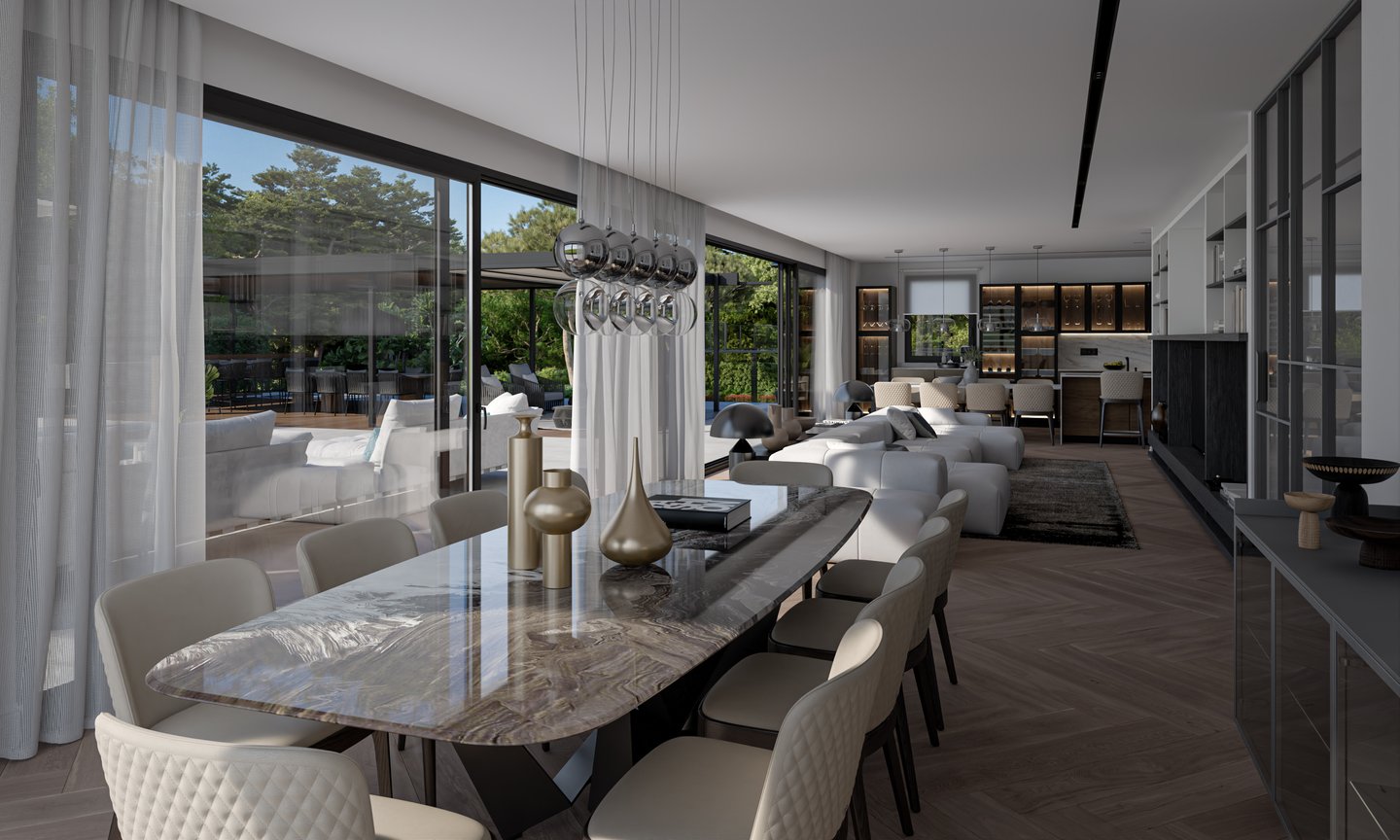 Die Immobilie befindet sich auf einem Grundstück von 2.100 m² und hat eine bebaute Fläche von 670 m². Das Projekt vereint Design, Funktionalität und Komfort, mit großen Terrassen, Garten, Schwimmbad, Paddle-Tennisplatz und einer Ausrichtung, die Ihnen einen freien Blick auf das Mittelmeer ermöglicht.