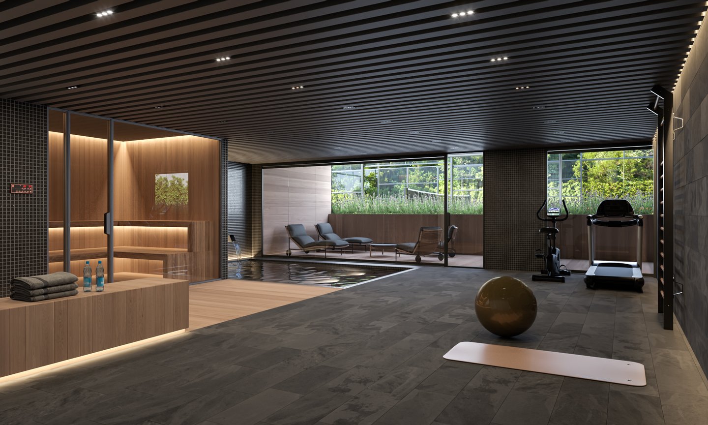 Halbuntergeschoss: Spiel- und Kinoraum, Weinbibliothek, Fitnessraum, Sauna und Hallenbad.