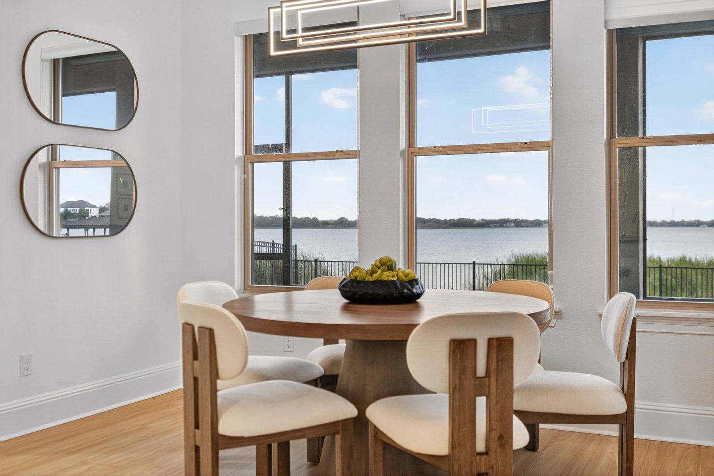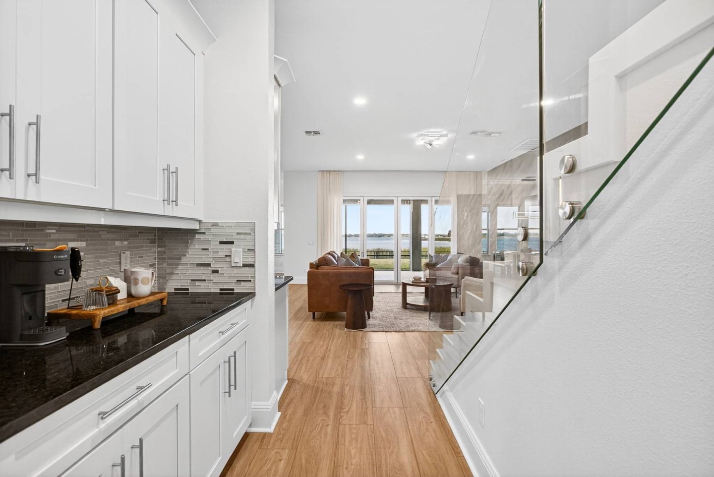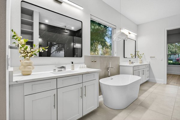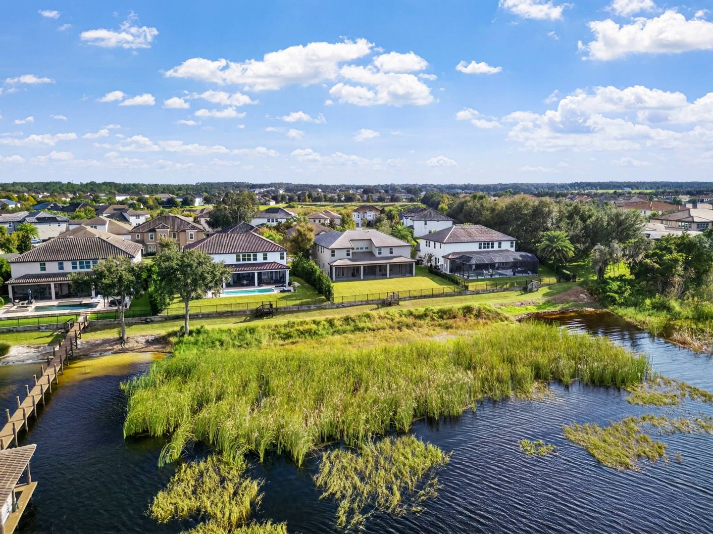 Entlang des ruhigen Ufers des Johns Lake in der hoch angesehenen Twinwaters-Gemeinde von Winter Garden gelegen, definiert dieses sieben-Schlafzimmer-Haus mit sechs und einem halben Bad das moderne Leben in Florida neu. Das 2016 erbaute und umfassend modernisierte Haus mit über 500 Quadratfuß Wohnfläche verbindet saubere Raffinesse mit der Wärme eines echten Rückzugsorts – ein perfektes Gleichgewicht zwischen Stil, Komfort und Funktion. Vom Moment an, in dem man eintritt, erzählt jede Oberfläche eine Geschichte der Verwandlung. Breite, luxuriöse Vinylböden ziehen sich nun durch das gesamte Haus und ergänzen ein neues gehärtetes Glasgeländer und eine verbesserte LED-Beleuchtung, die jeden Raum erhellt. Der offene Wohnbereich bietet eine individuell gestaltete Medienwand mit einem 85-Zoll-Einbaufernseher, Samsung-Soundanlage und einem versenkten 84-Zoll-Touchstone-Elektrokamin – ein markanter Fokuspunkt für alltäglichen Genuss und Unterhaltung. Die renovierte Küche verfügt über frische Oberflächen, Beleuchtung unter den Schränken und strahlend weiße Schränke, die alle zu einem großzügigen Essbereich führen, der sich ideal für Zusammenkünfte eignet. Zwei Hauptsuiten – je eine auf jeder Ebene – bieten außergewöhnliche Flexibilität. Die Suite im Erdgeschoss verfügt über eine maßgefertigte Kopfteilwand, schwimmende Beistelltische mit eingebauter Beleuchtung sowie ein spaähnliches Badezimmer mit Quarz-Arbeitsplatten, Schieferfliesen, einer freistehenden Badewanne und einer smarten Bidet-Toilette. Die zweite Suite bietet einen privaten Zugang zum Außenbereich und schafft so einen ruhigen Gäste- oder mehrgenerationenbezogenen Raum. Im Obergeschoss befindet sich ein beeindruckender Loftboden als Anker eines vollständigen Unterhaltungslevels mit einer Bar, Granitarbeitsplatten, einem Getränkekühlschrank und maßgefertigten Schränken. Das dedizierte Heimkino steht in der Konkurrenz zu professionellen Einrichtungen und bietet eine 120-Zoll-Leinwand, einen High-End-Projektor, immersives Surround-Sound und gestufte Ledersitze mit LED-Akzenten. Weitere Annehmlichkeiten sind zwei komplette Waschräume, maßgeschneiderte Schränke, ein Wasseraufbereitungs- und Enthärtersystem sowie integrierte Smart-Home-Technologie – vom Schlage Encode Smart Lock über app-gesteuerte Thermostate bis hin zur Ring-Türklingel. Im Freien bietet das 0,36 Hektar große Grundstück ein seltenes Gefühl von Raum und Privatsphäre, mit viel Platz, um einen zukünftigen Resort-Pool zu entwerfen oder einen Steg hinzuzufügen, um direkten Zugang zum motorisierten Johns Lake zu genießen. Die gepflegte Landschaft zeichnet sich durch neue Obstbäume, eine frisch gestaltete Außenfassade mit verbesserter Beleuchtung und Ventilatoren sowie eine einladende überdachte Terrasse für entspannte Abende unter dem Himmel Floridas aus. Idealerweise nur wenige Minuten vom Geschäftsviertel Hamlin, dem Winter Garden Village, erstklassigen Schulen und wichtigen Straßen wie der Turnpike und der 429 entfernt, bietet dieses Haus sowohl Ruhe als auch Bequemlichkeit. Prestigeträchtige nahegelegene Einrichtungen wie die Windermere Preparatory School und die Montverde Academy erhöhen ihre Attraktivität für diejenigen, die Exzellenz in Lebensstil und Bildung suchen. Luxus, Technologie und Komfort vereinen sich in der 16689 Broadwater Avenue – wo jede Modernisierung ein Engagement für Qualität widerspiegelt und jeder Raum dazu einlädt, wunderschön zu leben.