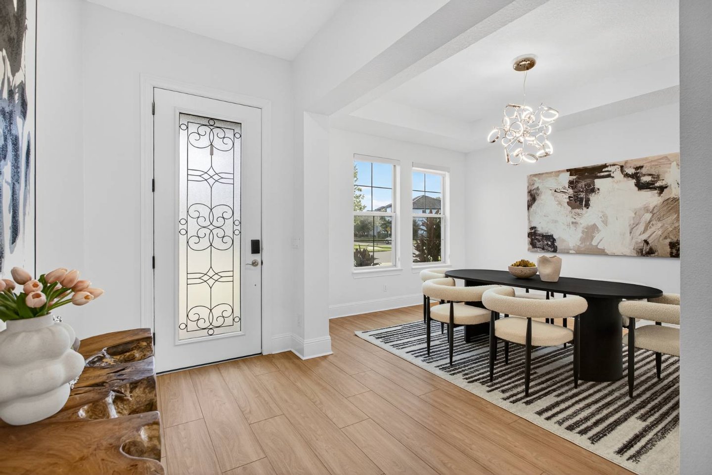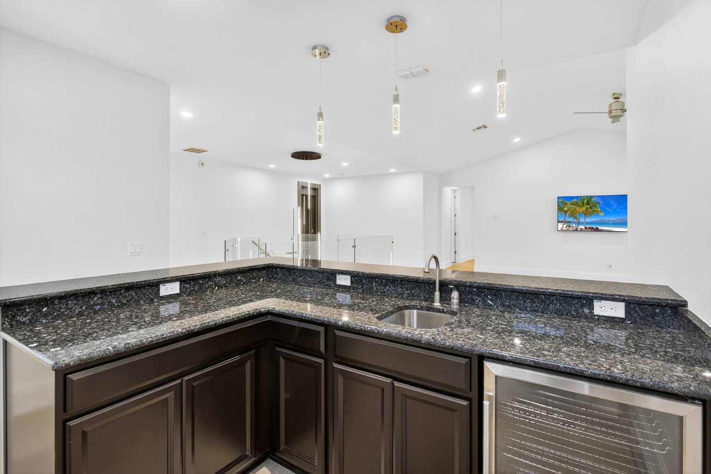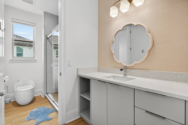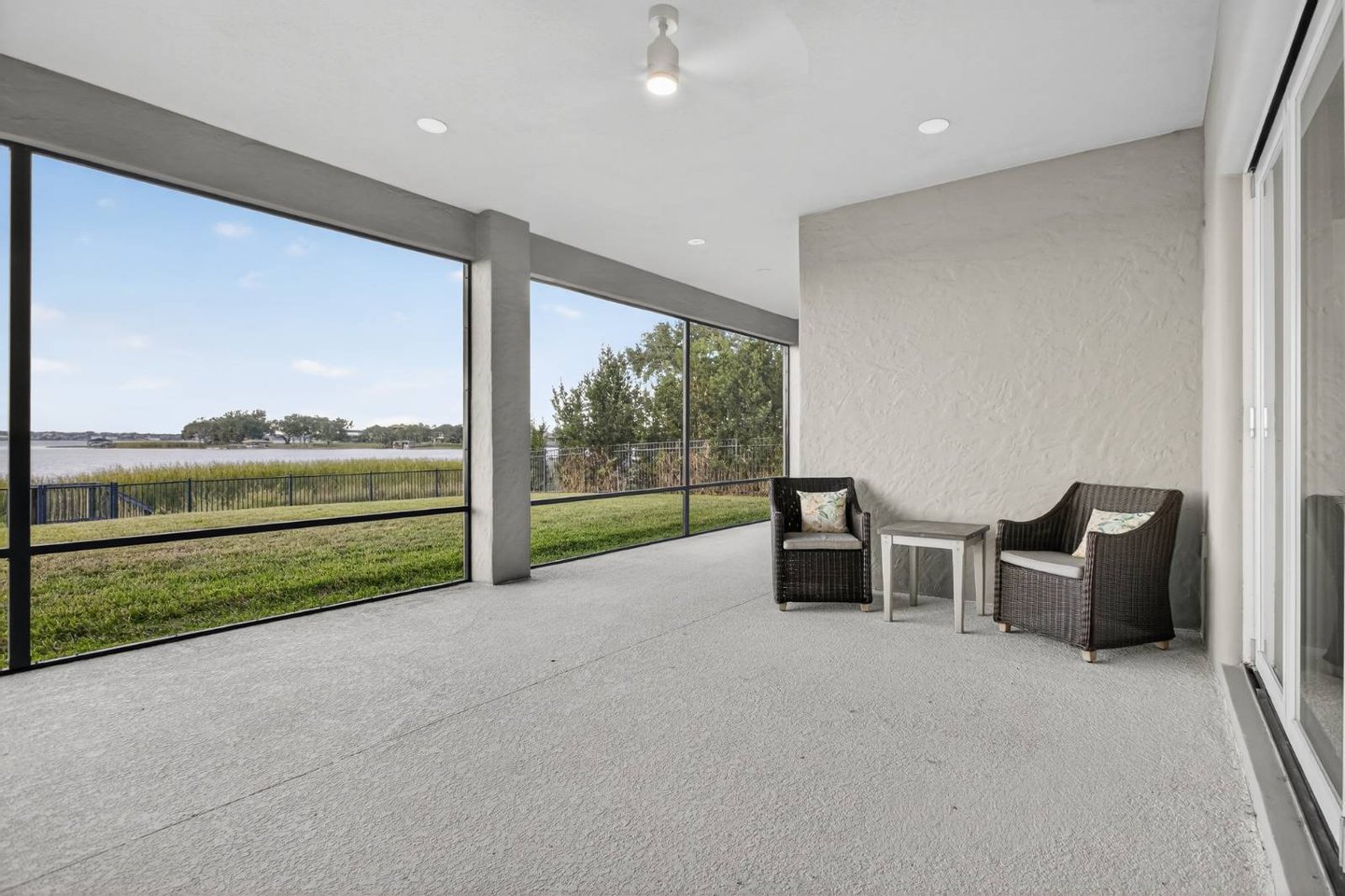 Entlang des ruhigen Ufers des Johns Lake in der hoch angesehenen Twinwaters-Gemeinde von Winter Garden gelegen, definiert dieses sieben-Schlafzimmer-Haus mit sechs und einem halben Bad das moderne Leben in Florida neu. Das 2016 erbaute und umfassend modernisierte Haus mit über 500 Quadratfuß Wohnfläche verbindet saubere Raffinesse mit der Wärme eines echten Rückzugsorts – ein perfektes Gleichgewicht zwischen Stil, Komfort und Funktion. Vom Moment an, in dem man eintritt, erzählt jede Oberfläche eine Geschichte der Verwandlung. Breite, luxuriöse Vinylböden ziehen sich nun durch das gesamte Haus und ergänzen ein neues gehärtetes Glasgeländer und eine verbesserte LED-Beleuchtung, die jeden Raum erhellt. Der offene Wohnbereich bietet eine individuell gestaltete Medienwand mit einem 85-Zoll-Einbaufernseher, Samsung-Soundanlage und einem versenkten 84-Zoll-Touchstone-Elektrokamin – ein markanter Fokuspunkt für alltäglichen Genuss und Unterhaltung. Die renovierte Küche verfügt über frische Oberflächen, Beleuchtung unter den Schränken und strahlend weiße Schränke, die alle zu einem großzügigen Essbereich führen, der sich ideal für Zusammenkünfte eignet. Zwei Hauptsuiten – je eine auf jeder Ebene – bieten außergewöhnliche Flexibilität. Die Suite im Erdgeschoss verfügt über eine maßgefertigte Kopfteilwand, schwimmende Beistelltische mit eingebauter Beleuchtung sowie ein spaähnliches Badezimmer mit Quarz-Arbeitsplatten, Schieferfliesen, einer freistehenden Badewanne und einer smarten Bidet-Toilette. Die zweite Suite bietet einen privaten Zugang zum Außenbereich und schafft so einen ruhigen Gäste- oder mehrgenerationenbezogenen Raum. Im Obergeschoss befindet sich ein beeindruckender Loftboden als Anker eines vollständigen Unterhaltungslevels mit einer Bar, Granitarbeitsplatten, einem Getränkekühlschrank und maßgefertigten Schränken. Das dedizierte Heimkino steht in der Konkurrenz zu professionellen Einrichtungen und bietet eine 120-Zoll-Leinwand, einen High-End-Projektor, immersives Surround-Sound und gestufte Ledersitze mit LED-Akzenten. Weitere Annehmlichkeiten sind zwei komplette Waschräume, maßgeschneiderte Schränke, ein Wasseraufbereitungs- und Enthärtersystem sowie integrierte Smart-Home-Technologie – vom Schlage Encode Smart Lock über app-gesteuerte Thermostate bis hin zur Ring-Türklingel. Im Freien bietet das 0,36 Hektar große Grundstück ein seltenes Gefühl von Raum und Privatsphäre, mit viel Platz, um einen zukünftigen Resort-Pool zu entwerfen oder einen Steg hinzuzufügen, um direkten Zugang zum motorisierten Johns Lake zu genießen. Die gepflegte Landschaft zeichnet sich durch neue Obstbäume, eine frisch gestaltete Außenfassade mit verbesserter Beleuchtung und Ventilatoren sowie eine einladende überdachte Terrasse für entspannte Abende unter dem Himmel Floridas aus. Idealerweise nur wenige Minuten vom Geschäftsviertel Hamlin, dem Winter Garden Village, erstklassigen Schulen und wichtigen Straßen wie der Turnpike und der 429 entfernt, bietet dieses Haus sowohl Ruhe als auch Bequemlichkeit. Prestigeträchtige nahegelegene Einrichtungen wie die Windermere Preparatory School und die Montverde Academy erhöhen ihre Attraktivität für diejenigen, die Exzellenz in Lebensstil und Bildung suchen. Luxus, Technologie und Komfort vereinen sich in der 16689 Broadwater Avenue – wo jede Modernisierung ein Engagement für Qualität widerspiegelt und jeder Raum dazu einlädt, wunderschön zu leben.