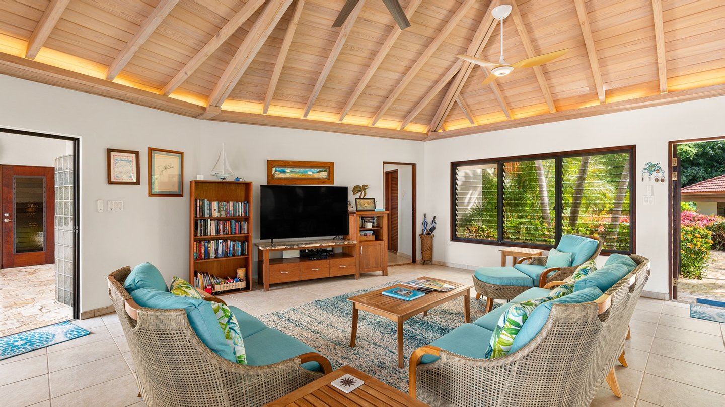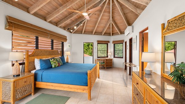 Caribbean Wind ist eine außergewöhnliche Strandvilla mit fünf Schlafzimmern in der begehrten Mahoe Bay, Virgin Gorda, die jetzt zum Verkauf steht. Direkt am unberührten Strand der Mahoe Bay gelegen, bietet Caribbean Wind einen atemberaubenden Panoramablick auf kristallklares türkisfarbenes Wasser und puderweichen weißen Sand. Mahoe Bay ist bekannt für seine ruhigen, geschützten Gewässer, die sich perfekt zum Schwimmen, Paddeln und vor allem Schnorcheln eignen. Das lebendige Korallenriff vor der Küste wimmelt von farbenfrohen Meereslebewesen und bietet eines der besten Schnorchelerlebnisse auf den Britischen Jungferninseln, direkt vor Ihrer Haustür. Caribbean Wind bietet unvergleichlichen Platz, Privatsphäre und Komfort. Dieses atemberaubende Anwesen wurde kürzlich nach höchsten Standards renoviert und verfügt über alle modernen Annehmlichkeiten und behält gleichzeitig seinen tropischen Charme bei. Dieser private Rückzugsort verfügt über einen glitzernden Pool, üppige tropische Gärten und exklusiven Zugang zum Strand. Innerhalb des Anwesens befindet sich ein halbprivater Tennisplatz, der Erholung und Entspannung gleichermaßen bietet. Die beruhigenden Klänge sanfter Wellen und die erfrischende Meeresbrise schaffen eine ruhige und einladende Atmosphäre, ideal für einen ruhigen Insellebensstil. KLICKEN SIE HIER, um einen virtuellen 3D-Rundgang durch das Anwesen zu machen. Das geräumige, große Zimmer --- Villa ist mit geschmackvoller Inseleleganz gestaltet und bietet Blick auf den Pool und den Strand. Mehrere Sitzbereiche bieten ausreichend Platz für Unterhaltung oder ruhiges Entspannen, während das Unterhaltungszentrum einen großen Fernseher und WLAN für den Genuss im Innenbereich bietet. Die voll ausgestattete Küche mit umfangreichen Geräten und einer Bar auf der Mittelinsel öffnet sich sowohl zum formellen Essbereich als auch zu einer überdachten Terrasse für Mahlzeiten im Freien am Pool. Jedes der fünf geräumigen Schlafzimmer verfügt über ein eigenes Bad und eine Terrasse. Im Erdgeschoss, angrenzend an den großen Raum, sind die Zweibettzimmer von der Master-Suite oder der Terrasse aus zugänglich, was diese Villa perfekt für Familien mit kleinen Kindern macht. Für Paare oder Kinder im Teenageralter, die mehr Privatsphäre benötigen, gibt es zwei Schlafzimmer-/Badezimmersuiten, die sich in einer Kapsel auf der anderen Seite des großen Raumes befinden. Die Grand Master Suite ist über eine Treppe von der Poolterrasse aus auf die zweite Ebene erreichbar und bietet von ihrer erhöhten Position aus einen herrlichen Blick auf das Meer, die Insel und den Sonnenuntergang. Ein angeschlossener Wohnbereich kann in ein zusätzliches Schlafzimmer umgewandelt werden, zusammen mit einem eigenen Badezimmer mit Innen- und Außendusche. Weiter oben genießen Sie eine erhöhte Cocktailterrasse und einen noch spektakuläreren Blick auf den Sonnenuntergang! Praktisch ist eine geräumige Garage, eine Doppelwaschküche und viel Stauraum. Dieses außergewöhnliche Haus ist an den automatischen Notstromgenerator des Anwesens und die öffentliche Entwässerungswasserversorgung angeschlossen. Caribbean Wind at Mahoe Bay ist mehr als nur eine Villa. Es ist eine seltene Gelegenheit, ein Stück Paradies an einem der begehrtesten Orte --- Karibik zu besitzen. Ob als luxuriöse Privatresidenz oder als Finanzinvestition gehaltene Immobilie mit starkem Vermietungspotenzial, diese Villa bietet ein unvergleichliches Insellebenserlebnis. Rufen Sie Chris Smith, Managing Broker, unter 1 (284) 340 3000 an, um einen Besichtigungstermin zu vereinbaren oder für weitere Informationen eine E-Mail an chris@coldwellbankerbvi.com senden.