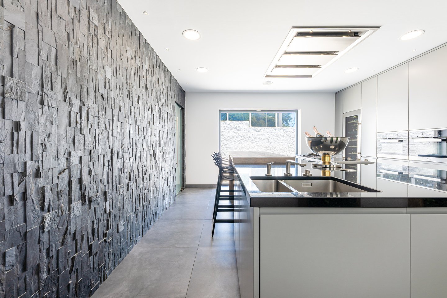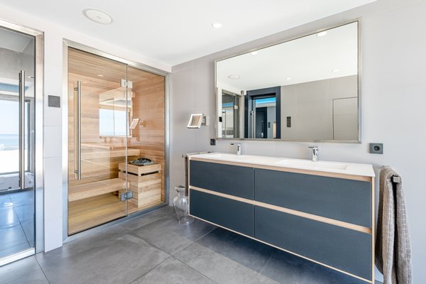 Geprägt durch großzügige Glasflächen, geometrische Volumen und ein offenes Raumkonzept, verkörpert die Villa modernstes Design und zeichnet sich durch innovative, avantgardistische Details aus. Im Inneren sorgen futuristische Elemente, maßgeschneiderte Akzentwände und vertikale Begrünung für Wärme und Dynamik.