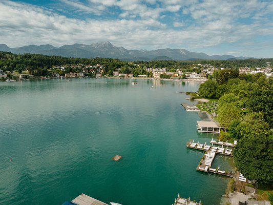 Das exklusive Grundstück liegt in ruhiger, aber dennoch zentraler Lage in Velden am Wörthersee, einer der begehrtesten Wohnlagen Österreichs im Bundesland Kärnten. Die Nachbarschaft ist geprägt von hochwertigen Einfamilienhäusern und Villen, was die Exklusivität der Gegend unterstreicht. Die Immobilie verfügt über einen direkten Seezugang, der es ermöglicht, das kristallklare Wasser des Wörthersees in vollen Zügen zu genießen. Der Wörthersee, einer der größten und wärmsten Alpenseen, zieht sowohl Touristen als auch Immobilienkäufer magisch an.Die Region zeichnet sich durch ihre atemberaubende Naturkulisse, das milde Klima und eine Vielzahl von Freizeitmöglichkeiten aus. Velden am Wörthersee bietet eine perfekte Kombination aus Erholung und Aktivitäten. Schwimmen, Segeln oder einfach nur Entspannen am Privatstrand – hier kommen Wasserliebhaber auf ihre Kosten. Die umliegenden Berge und Wälder laden zu Wanderungen, Radtouren und anderen Outdoor-Aktivitäten ein. Im Winter bieten die umliegenden Skigebiete vielfältige Wintersportmöglichkeiten.Velden am Wörthersee ist nicht nur ein Paradies für Naturliebhaber, sondern bietet auch eine hervorragende Infrastruktur. Die Liegenschaft liegt nur wenige Meter vom charmanten Ortskern Velden entfernt, welcher für sein elegantes Casino, exklusive Boutiquen und ein vielfältiges gastronomisches Angebot bekannt ist. Die Verkehrsanbindung ist ebenfalls hervorragend. Die Autobahn A2 ist in 7 Minuten erreichbar und verbindet Velden mit Klagenfurt (23 Minuten) und Villach (17 Minuten). Der Bahnhof Velden am Wörthersee ist nur 10 Gehminuten entfernt, während der Flughafen in etwa 30 Minuten mit dem Auto erreicht werden kann. Auch folgende bedeutende Städte sind mit dem Auto schnell anzufahren: Wien und München jeweils in etwa drei Stunden. Italienische Ziele wie Venedig und Triest sind in rund zwei Stunden zu erreichen.