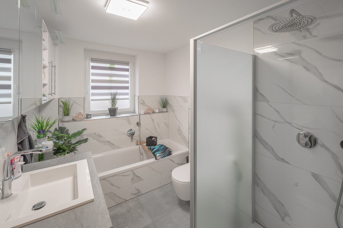 Das Objekt verfügt über Fußbodenheizung, elektrische Rollläden, einem überdachten Balkon, mit einer tollen Markise als Sonnenschutz, und eine Gartenterrasse mit Gartenmitbenutzung.