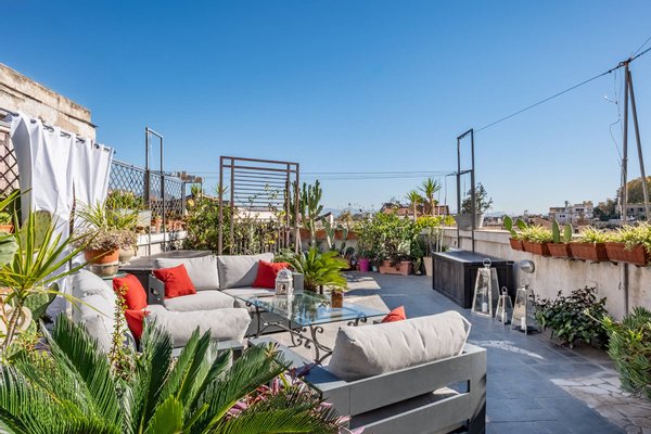 Das Haus erstreckt sich über mehrere Ebenen, die harmonisch Innen- und Außenbereiche verbinden: Der Zugang vom Corso Vittorio Emanuele führt über eine erste Treppe in das großzügige Panoramaliving, die Wohnküche, ein besonderes Gäste-Bad und die große Terrasse auf dieser Ebene, ausgestattet mit allen Annehmlichkeiten und als natürliche Erweiterung des Hauses konzipiert.