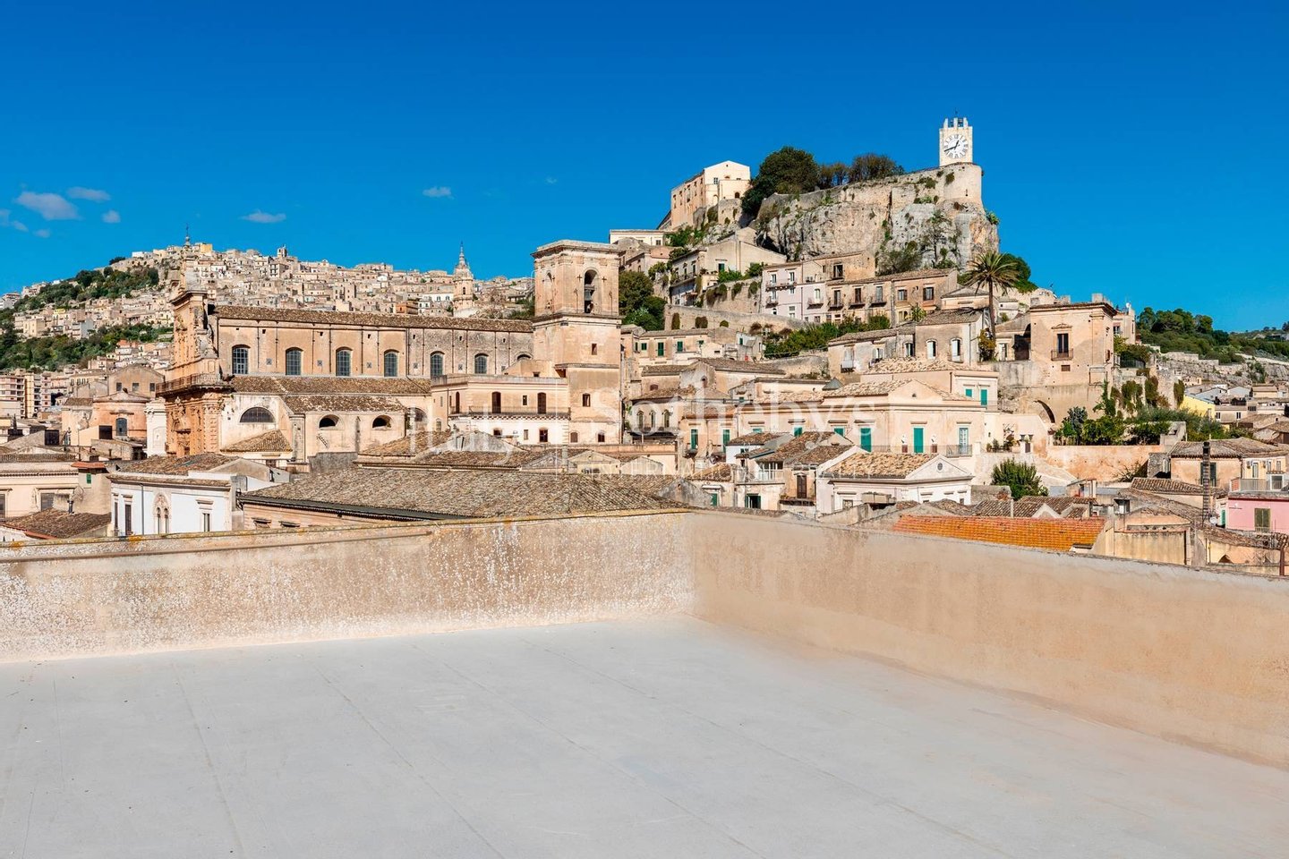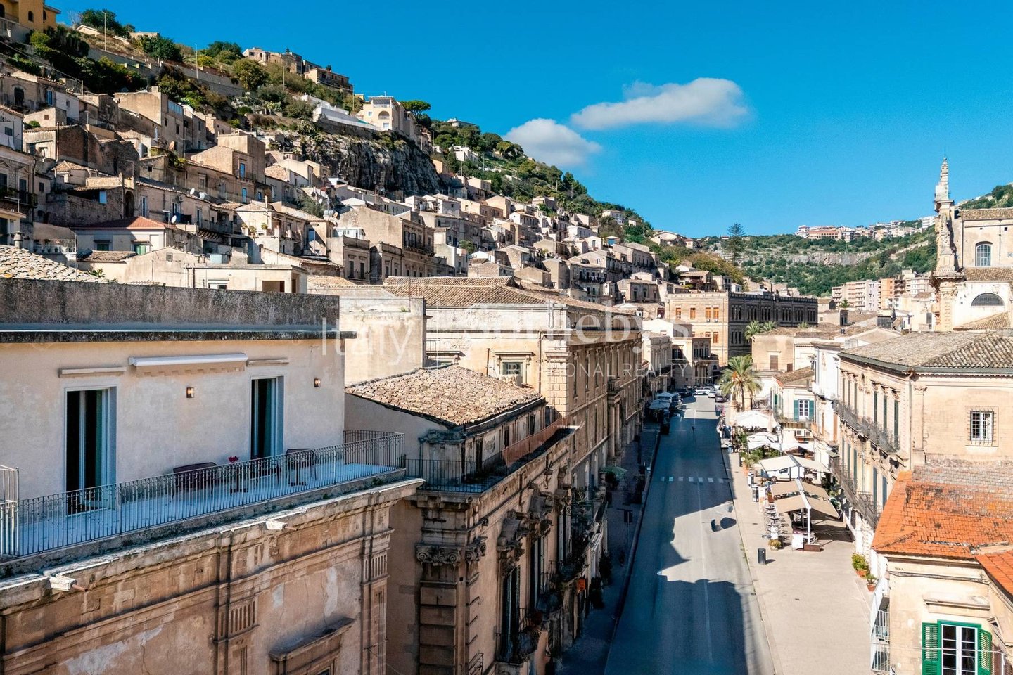 Die großzügigen und lichtdurchfluteten Räume öffnen sich zu einer Terrasse mit bezauberndem Blick auf den Corso Umberto I, die Hauptstraße der Stadt. Im dritten Stock bietet eine zweite Panoramaterrasse einen herrlichen Blick über die Dächer von Modica - perfekt für einen Aperitif bei Sonnenuntergang oder entspannte Momente unter dem sizilianischen Himmel.