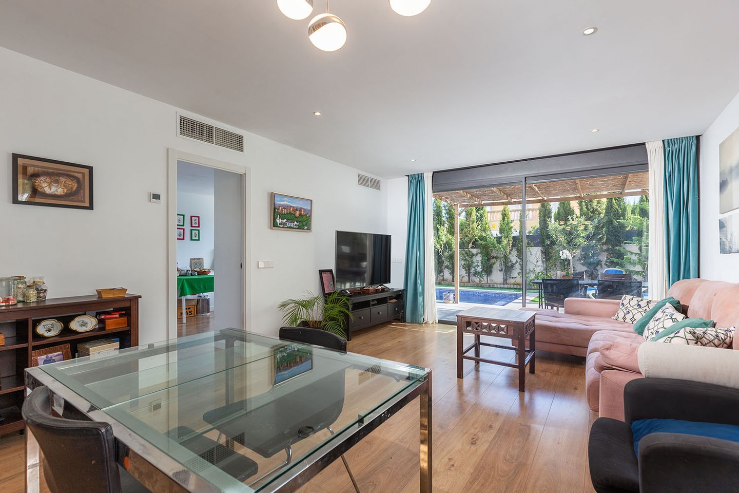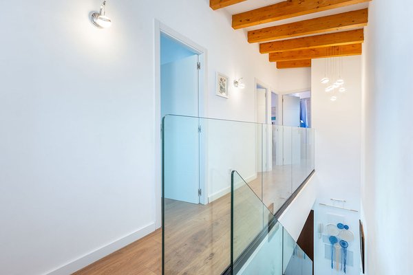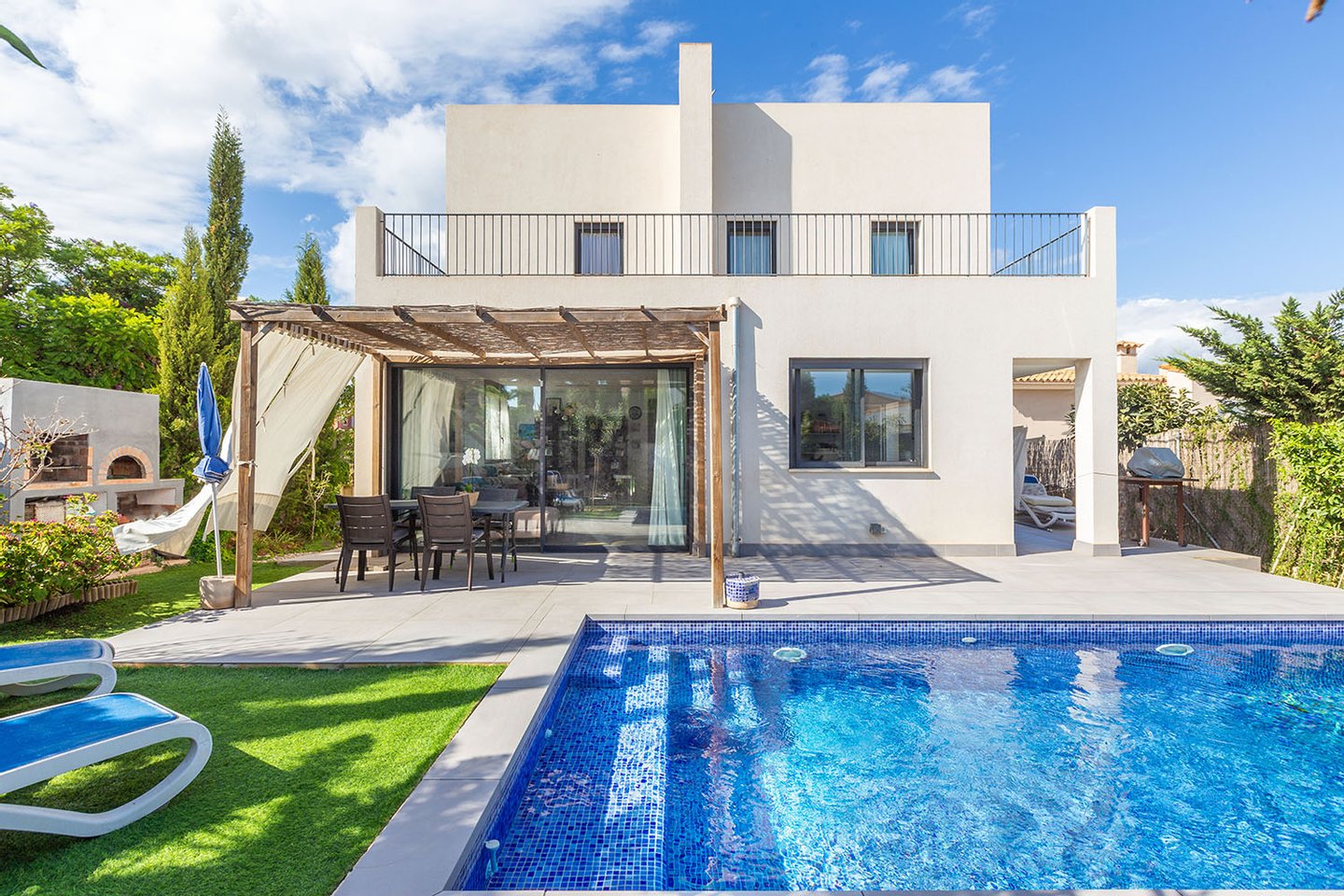 In ruhiger Wohnlage befindet sich diese moderne Villa auf einem pflegeleichten Grundstück in residenter Apartment- und Villenwohnlage in der Urbanisation Son Ferrer. Die kleine Ortschaft befindet sich zwischen dem Golfplatz Santa Ponsa III und dem Golfplatz T-Poniente. Die Marina von Port Adriano, El Toro mit seinen Einkaufsmöglichkeiten oder der Sandstrand von Cala Vinyas sind auf kurzem Weg zu erreichen. Das Einfamilienhaus erstreckt sich über drei Etagen und genießt dank der Südausrichtung den ganzen Tag über die Sonne. Ein ausgebauter Keller bietet viele Nutzungsmöglichkeiten. Im Außenbereich stehen freie und überdachte Terrassen, ein kleiner Garten mit Grünflächen und Obstbäumen, ein Salzwasserpool sowie ein PKW-Stellplatz zur Verfügung.