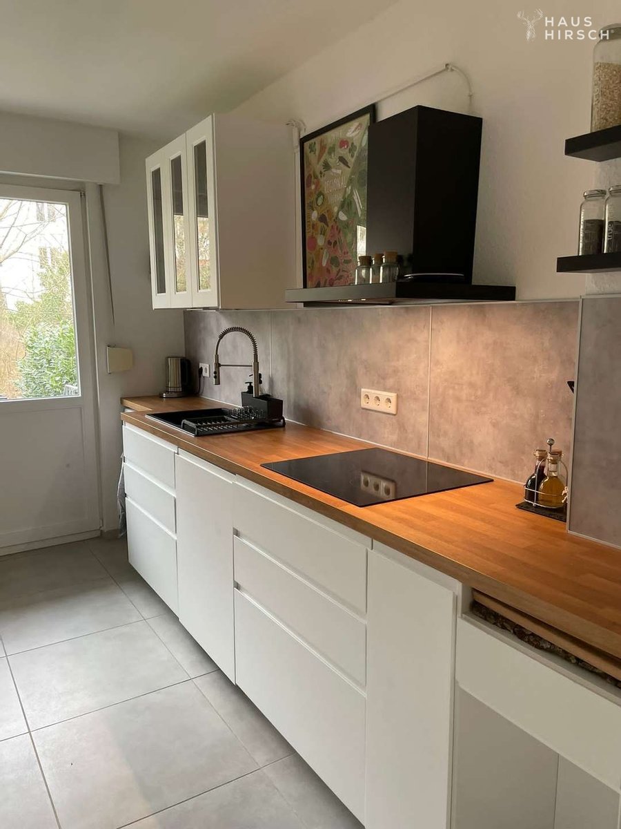 Die Küche wurde ebenfalls 2021 saniert und erstrahlt in neuem Glanz. Hier finden Sie ausreichend Platz, um kulinarische Köstlichkeiten zu zaubern. Von der Küche aus gelangen Sie auf den zweiten Balkon sowie direkt in den Garten. Das angrenzende Schlafzimmer sowie das Büro/Kinderzimmer bieten ebenfalls viel Raum für individuelle Gestaltungsmöglichkeiten.