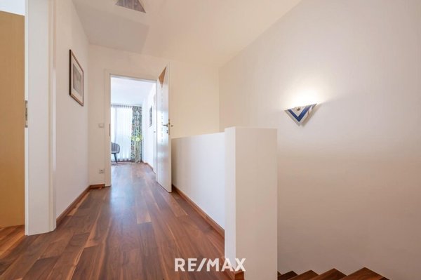 Das Obergeschoss erreicht man über eine schöne Vollholztreppe - das OG bietet neben 2 sehr großzügigen Zimmern, auch ein Badezimmer mit Dusche und Eckbadewanne, sowie ein 2tes privates WC. Der Masterbedroom ist mit 20m² angemessen groß, die begehbare Garderobe ist räumlich abgetrennt und über eine Schiebetüre zu begehen. Das 2te Zimmer kann als Arbeitszimmer oder Kinderzimmer verwendet werden und ist - weil auch richtig Süden orientiert - freundlich hell und lichtdurchflutet. Das Angebot rundet zusätzlich ein riesiger Allgemein-Garten, sowie ein großer & trockener Garagenplatz im Eigentum, ab.