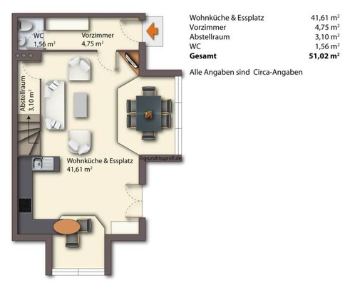 -) Wohn- /Esszimmer & Küchenbereich ca. 42m²