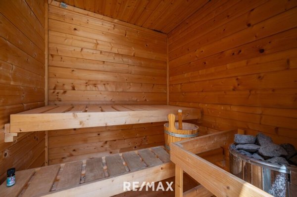 Ein wahrliches Highlight ist der Garten - ausgestattet mit einem Schwimmspa ( ca. 7500l) mit Gegenstromanlage von EUTECH und einem Sauna Häuschen (Platz für 3 Personen) findet man hier Ruhe und Entspannung vom Alltag . Auch für Hochbeete und Pflanzen ist genug Platz - die Autos finden vor dem Haus am Grundstück unter dem Car Port Platz (das Einfahrtstor öffnet elektrisch per Fernbedienung) und sind vor Wind und Wetter geschützt. Vor dem Haus steht dem neuen Eigentümer ein Gartenhaus viel Stauraum zu Verfügung. Der Garten ist 2020 mit einem hochwertigen Steinteppich aus Marmorkiesel ausgelegt worden.