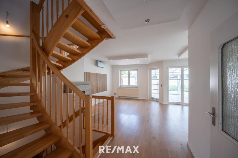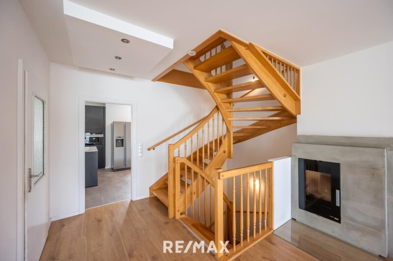 Auf 3 Ebenen (Wohnkeller, EG und OG) verteilen sich ca. 180 m² Wohnfläche und 6 Zimmer, sowie je 2 Bäder und Toiletten. Das Haus wurde vom Eigentümer aufwendig renoviert, eine Markenküche sowie Klimaanlage installiert. Im Erdgeschoss finden Sie im Vorraum die erste (Gäste-) Toilette, und gelange dann ins großzügige Wohnzimmer; weiters findet man links die voll ausgestattete Küche mit Essplatz. Über schöne Vollholzstiegen gelangt man ins Obergeschoss, wo man 3 große Schlafzimmer sowie ein Badezimmer mit Doppelwaschbecken, Badewanne und Dusche vorfindet.