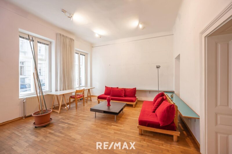 Hell, lichtdurchflutet und mit großzügiger Grundfläche präsentiert sich dieses loftartige 1-Zimmer-Wohnatelier im Hochparterre eines Wiener Gründerzeithauses mit einem offenen Raumgefühl, das Herz und Inspiration gleichermaßen anregt. Hohe Decken von rund 3,40 m schaffen eine luftige Atmosphäre, in der sich Arbeiten, Träumen und Leben greifbar vereinen. Der Schlafbereich lässt sich sanft durch einen Vorhang abtrennen – eine behutsame Rückzugszone, die Privatsphäre schenkt, ohne den offenen, spürbaren Fluss zu unterbrechen. Flexible Nutzungsmöglichkeiten: Wohnen, Arbeiten, Atelier – ganz nach Ihrem Rhythmus. Ob möbliert oder unmöbliert – ganz, wie Sie es bevorzugen.