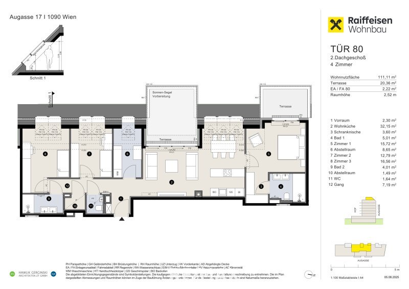 In einer wenig befahrenen Seitengasse entstehen nächst dem angekündigten „Campus Althangrund“ 81 attraktive 2-4 Zimmer Wohnungen zwischen ca. 39 und 163 m². Nahezu alle Wohneinheiten werden über gut nutzbare Freiflächen wie Balkone, Loggien, Terrassen oder Gärten verfügen. Die hauseigene Tiefgarage wird für 30 komfortable Einzelstellplätze Platz bieten. Auch an genügend Abstellplätze für Fahrräder und Lastenfahrräder wurde gedacht.
