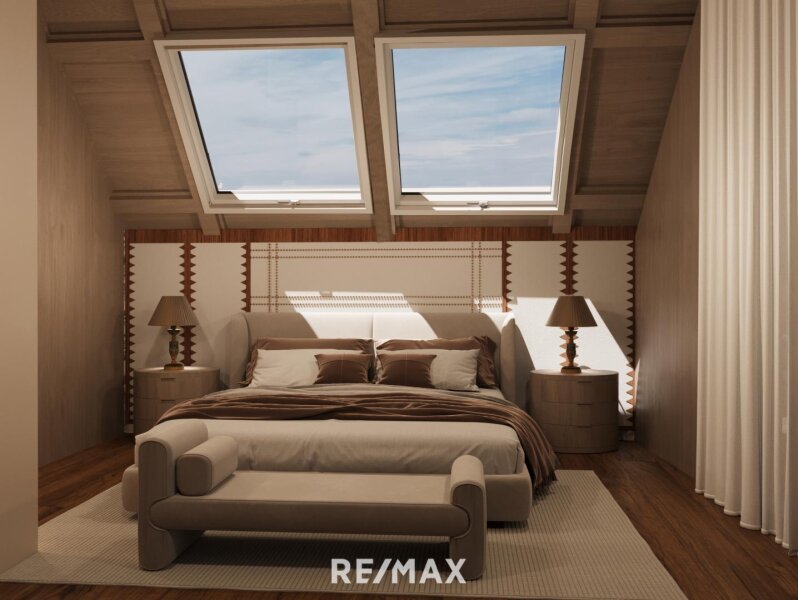 Über eine elegante Treppe gelangen Sie schließlich auf die großzügige Dachterrasse – ein absolutes Highlight dieser Immobilie. Hier eröffnet sich Ihnen ein herrlicher Ausblick über die Umgebung – ein Platz, der zum Verweilen, Genießen und Innehalten einlädt.