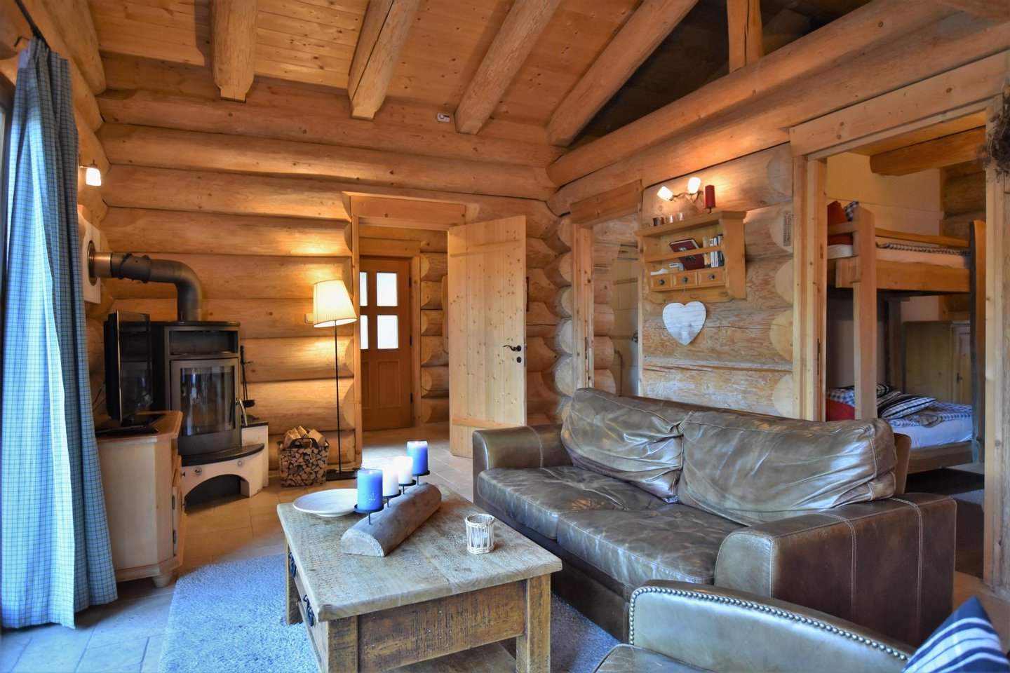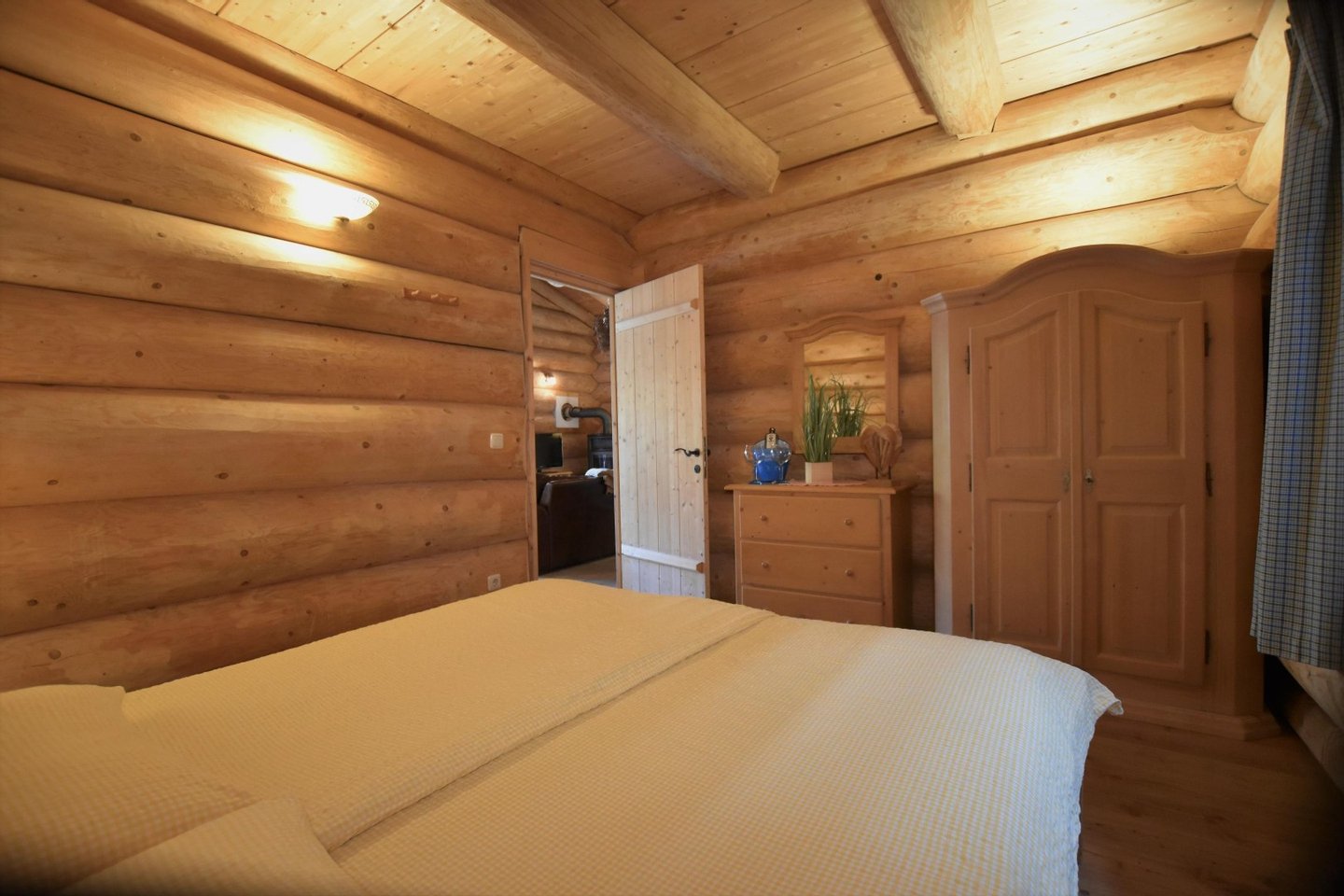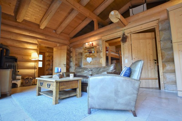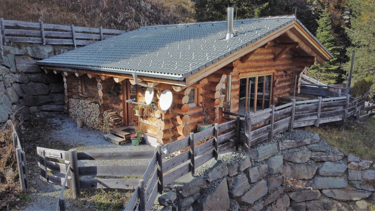 Das massive Rundholzhaus bietet Platz für bis zu sechs Personen und ist ausgestattet mit: