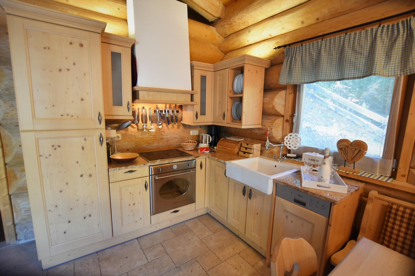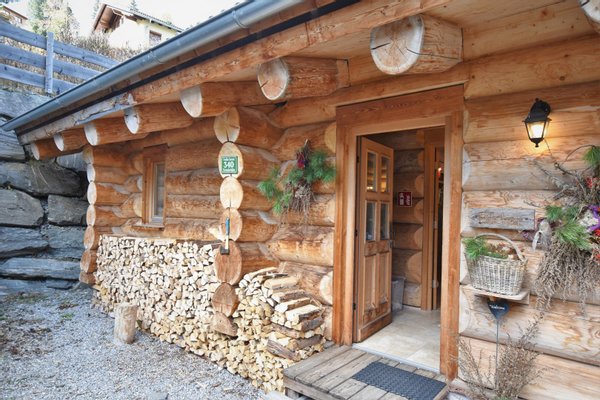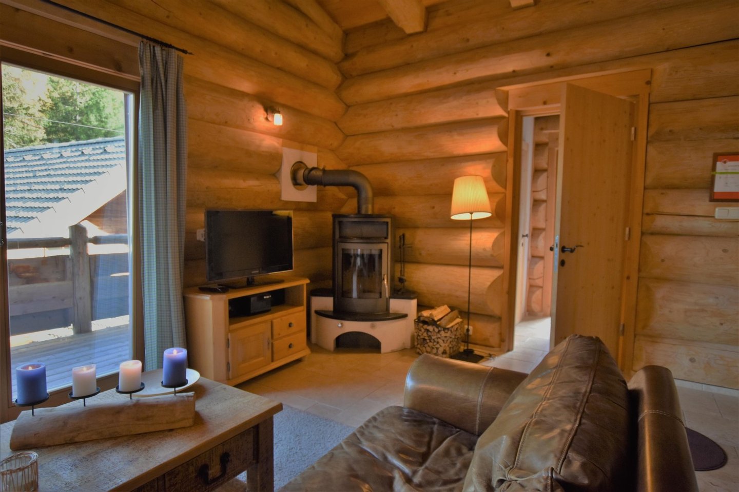 Das massive Rundholzhaus bietet Platz für bis zu sechs Personen und ist ausgestattet mit: