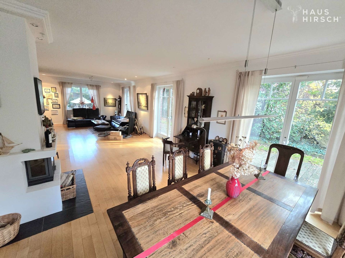 Diese klassische Villa, eine modern interpretierte „Hamburger Kaffeemühle“, bietet auf insgesamt vier Ebenen über 350 m² Wohn- und Nutzfläche. Neun großzügige Zimmer sowie vier Bäder schaffen ein äußerst attraktives Wohnerlebnis, das durch zwei