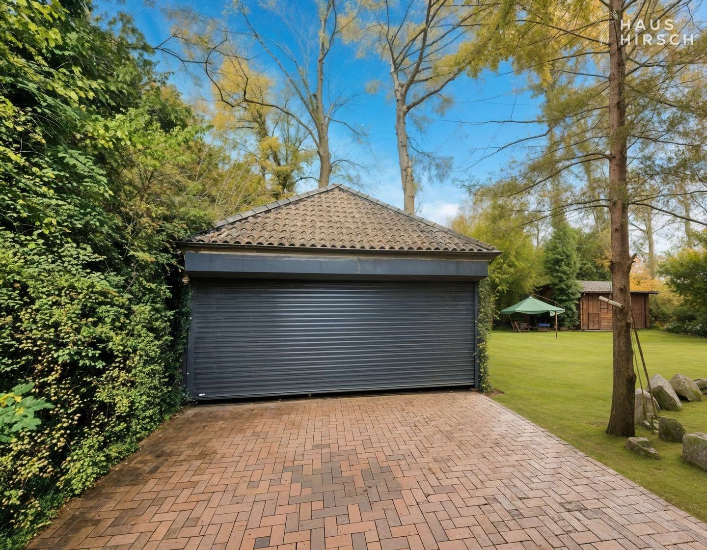 Die große Doppelgarage mit elektrischem Rolltor, angrenzendem Geräteschuppen und umfangreichem Bodenbereich, eine Wallbox zum Laden von E-Fahrzeugen sowie ein gemütliches Gartenhaus lassen keine Wünsche offen und runden das Angebot ab.