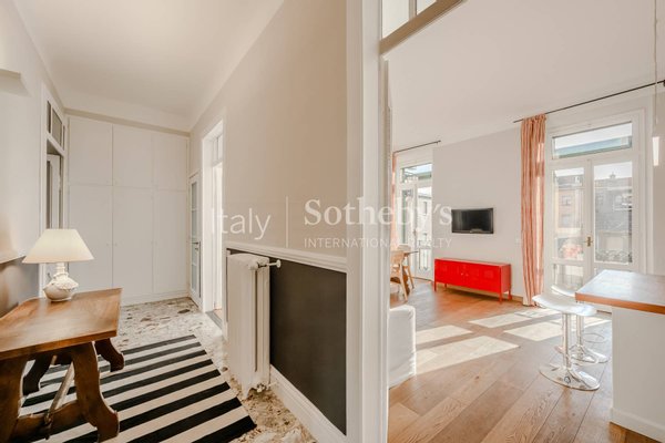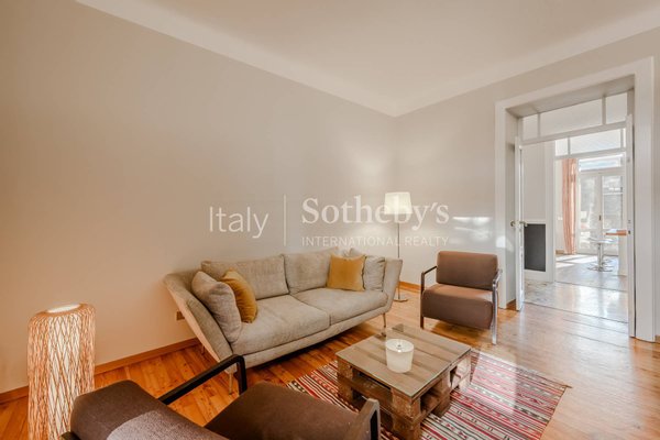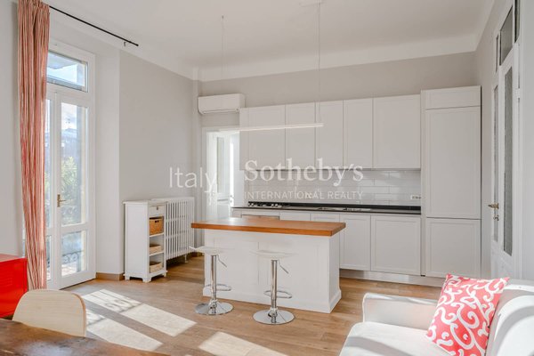 Die Innenräume bewahren wunderschöne Holzböden und originale Türen aus der Entstehungszeit, die der Wohnung einen authentischen und zeitlosen Charme verleihen. Ergänzt wird die Immobilie durch zwei Balkone: einen mit Seeblick und einen großen, komfortablen Balkon, ideal, um die frische Luft zu genießen und die umgebende Natur zu bewundern. Zu den weiteren Annehmlichkeiten gehören ein privater Keller und ein kleiner Gemeinschaftsgarten.