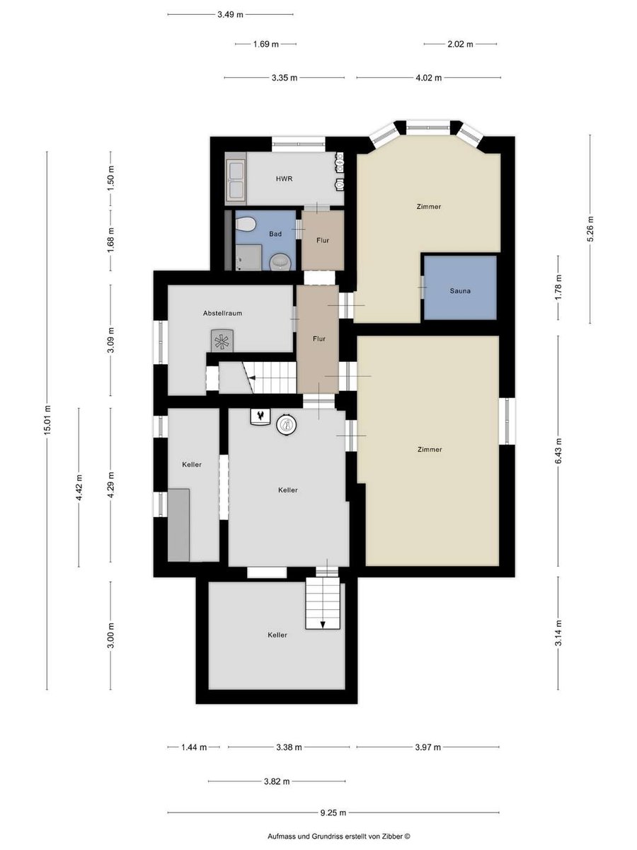 Der voll ausgebaute Keller rundet das Angebot ab und bietet weit mehr als nur Stauraum. Hier befinden sich ein Bad mit Dusche, eine kleine Sauna für entspannte Stunden sowie ein großzügiger Partyraum für gesellige Abende. Ein weiterer Raum beherbergt die Gasheizung aus dem Jahr 2013, die sich weiterhin in einem funktionstüchtigen Zustand befindet. Die Deckenhöhe im gesamten Kellerbereich beträgt ca. 2,00 m.