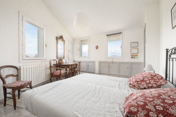 Im Obergeschoss befinden sich zwei außergewöhnlich große Schlafzimmer, die sich ein Badezimmer teilen und Zugang zu einer ausgedehnten Dachterrasse haben, von der aus man die beeindruckenden Meer- und Bergblicke vollständig genießen kann.