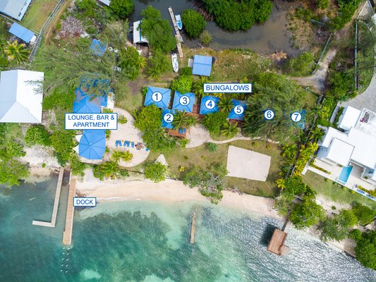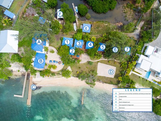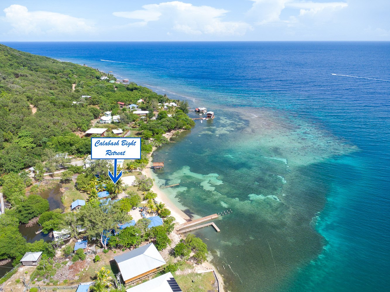 Welcome to Calabash Bight Resort, a rare chance to own a beachfront escape to Roatan serene east shore. This exceptional property features 7 beachfront bungalows, each with 1 bedroom and 1 bathroom. Some bungalows are outfitted with double or even triple beds, making them flexible for families, groups, or retreat guests. In addition, the retreat includes a 1-bedroom, 1-bath apartment ideal for extended stays or an onsite manager, along with a caretaker's casita for dedicated staff housing and a watersport center. The property boasts 207 feet of pristine beachfront, along with a ocean side private dock and a private canal marina featuring 133.07 feet of canal frontage. It is thoughtfully designed for both leisure and adventure.