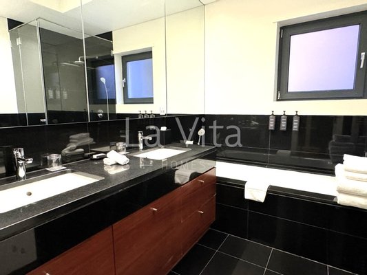 Eingebettet in eine Wohnanlage mit Innen- und Außenpool (beheizt), Fitnessraum, Spa und 24-Stunden-Sicherheitsdienst, ist die Wohnung von einer weitläufigen Grünfläche umgeben und sehr ruhig und besteht aus: