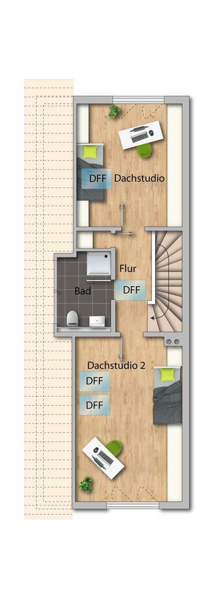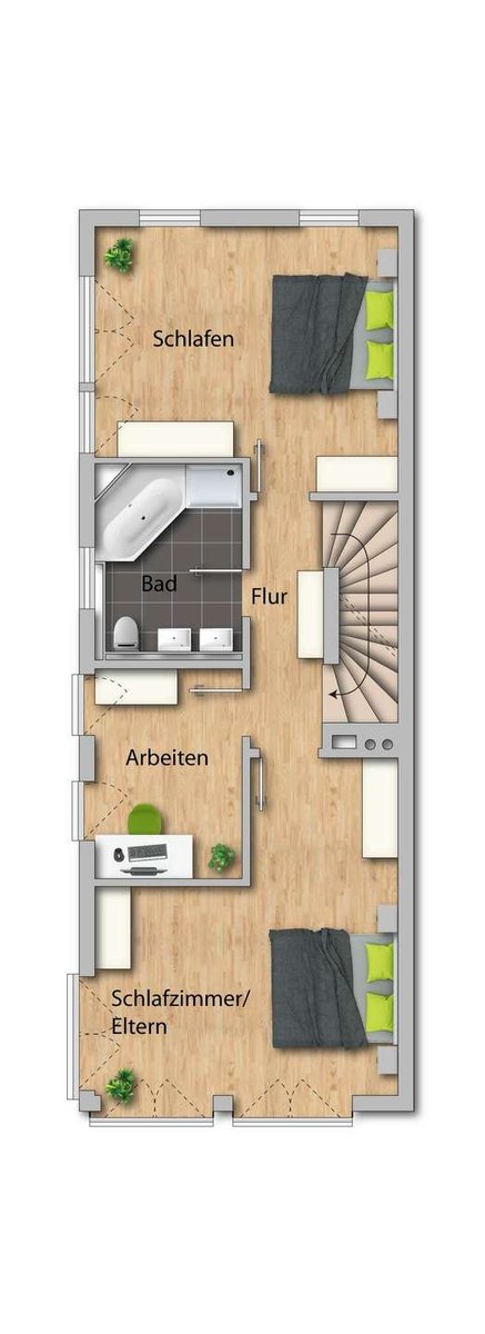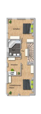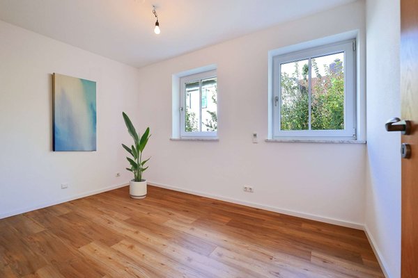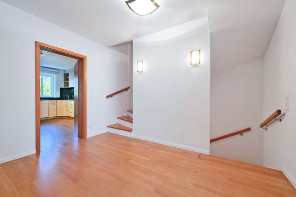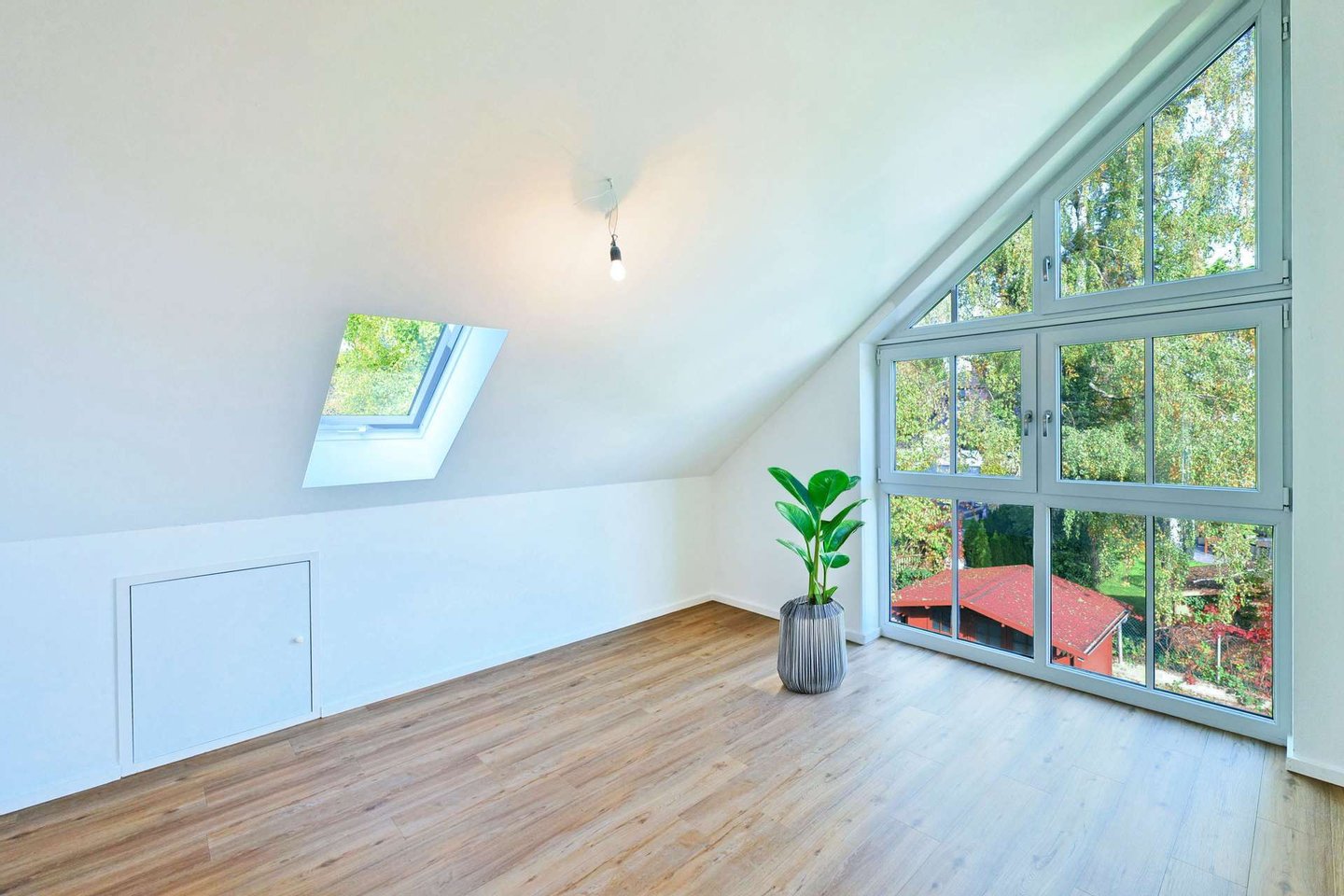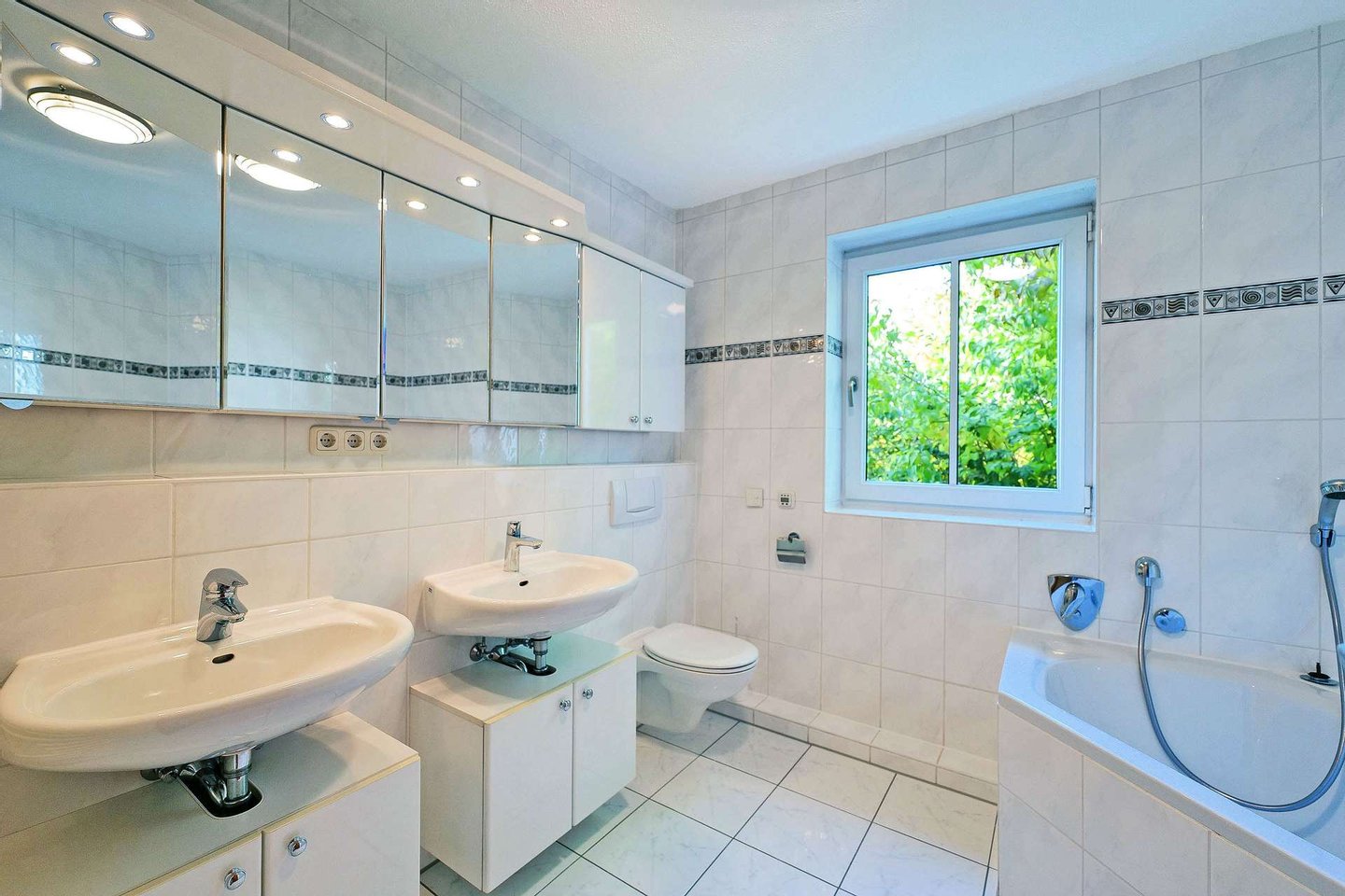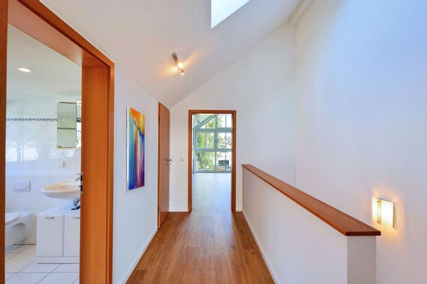 Über eine elegante Treppe gelangen Sie ins Obergeschoss, das mit zwei großzügigen Schlafzimmern und einem hellen Büro viel Raum für Rückzug und Entfaltung bietet. Das stilvolle Tageslichtbad mit Badewanne, Dusche, Doppelwaschtisch und WC vereint Komfort und Wohlfühlatmosphäre. Sowohl hier als auch im Dachgeschoss wurde ein neuer, hochwertiger Vinylboden verlegt, der den Räumen eine moderne und harmonische Note verleiht.