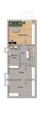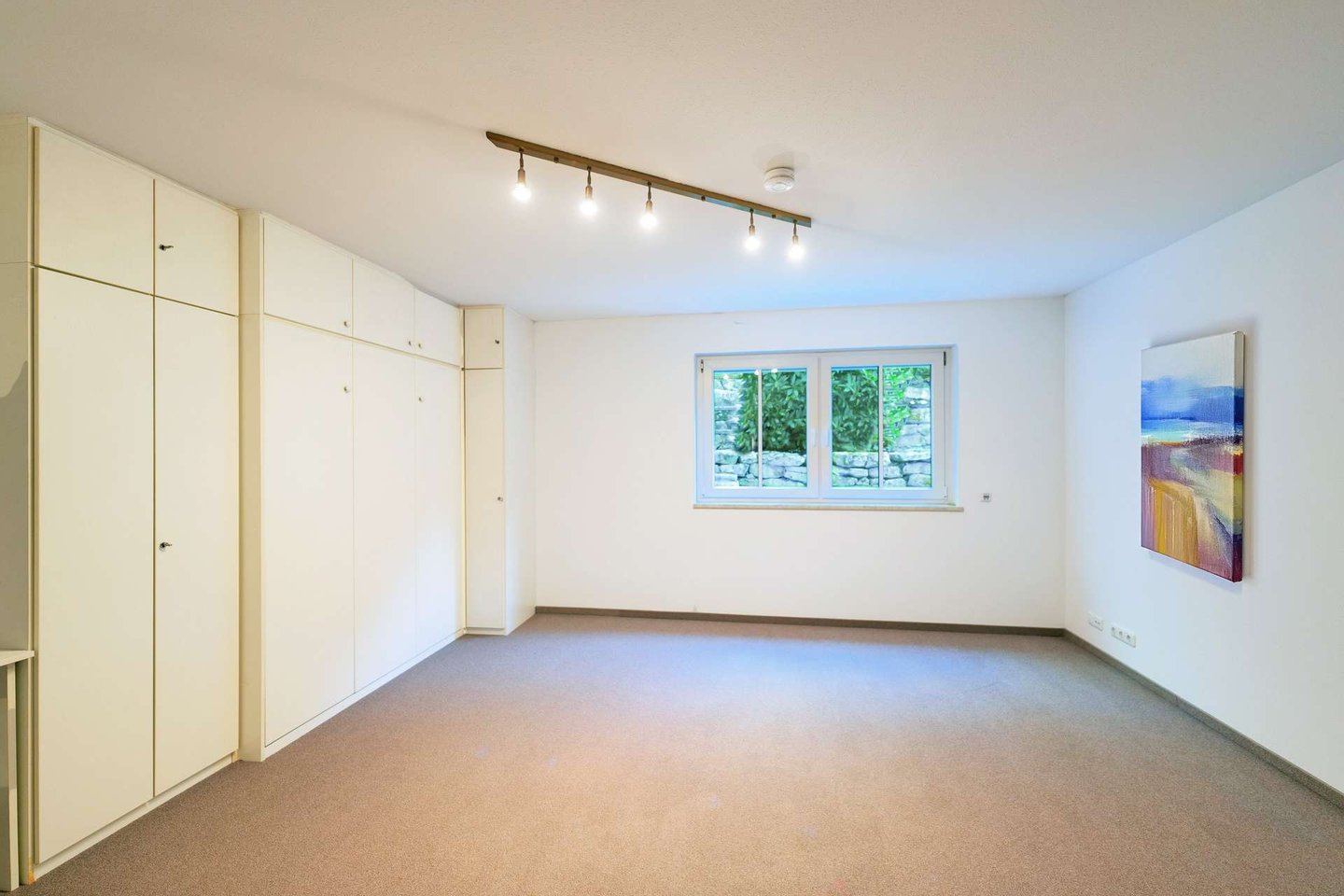 Das Haus ist vollständig unterkellert und verfügt über einen großzügigen Hobbyraum in Wohnraumqualität. Durch die große Naturabböschung fällt reichlich Tageslicht ein, wodurch der Raum hell und freundlich wirkt – ideal nutzbar als zusätzlicher Wohnbereich, Gästezimmer oder kreativer Rückzugsort.