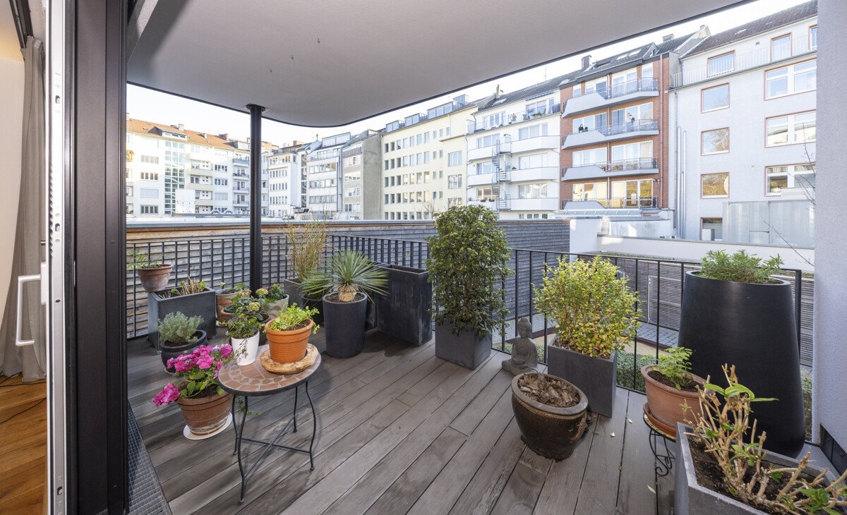Der nahegelegene Hofgarten, eine grüne Oase inmitten der Stadt, bietet den Bewohnern die Möglichkeit, dem städtischen Trubel zu entkommen und die Natur zu genießen. Spaziergänge durch diesen idyllischen Park schaffen eine harmonische Verbindung zwischen urbanem Lebensstil und natürlicher Erholung. Nicht nur die kulturellen und kommerziellen Vorzüge machen diese Lage besonders attraktiv, sondern auch die hervorragenden Verkehrsverbindungen. Die Anbindung an das Verkehrsnetz ist optimal, und der Flughafen sowie das Messegelände sind leicht erreichbar. Diese geografischen Vorteile machen diese Wohngegend nicht nur für anspruchsvolle Bewohner, sondern auch für Geschäftsreisende äußerst attraktiv.