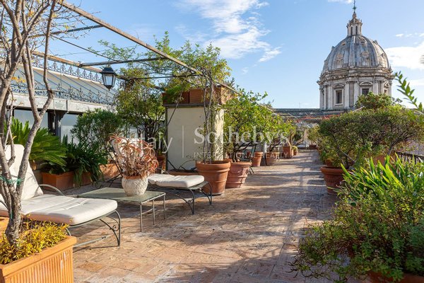 Im Herzen des authentischen Roms, nur wenige Schritte von Campo de' Fiori entfernt, befindet sich dieses elegante Penthouse mit Dachgeschoss - eine exklusive Residenz mit atemberaubendem Blick auf die Corso Vittorio Emanuele II. Diese außergewöhnliche Immobilie verkörpert die zeitlose Eleganz und den Prestige der „Großen Schönheit' Roms.
