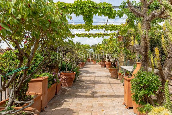 Edle Materialien, originale Terrazzo-Böden und antike Möbelstücke verleihen den Räumen Charakter und Charme. Der Wohnbereich öffnet sich zu einem repräsentativen Doppelsalon, einem lichtdurchfluteten Wohnzimmer, das auch als Arbeitszimmer genutzt werden kann, einem einladenden Esszimmer und einer maßgefertigten, handwerklich gestalteten Küche.