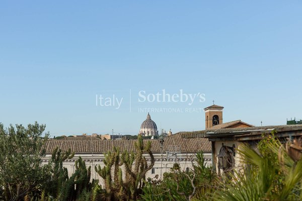Im oberen Stockwerk befindet sich eine elegante Veranda mit Kamin, eine zweite Küche und eine spektakuläre Terrasse mit dritter Außenküche, Fitnessbereich und hängendem Garten - eine private Oase über den Dächern Roms.