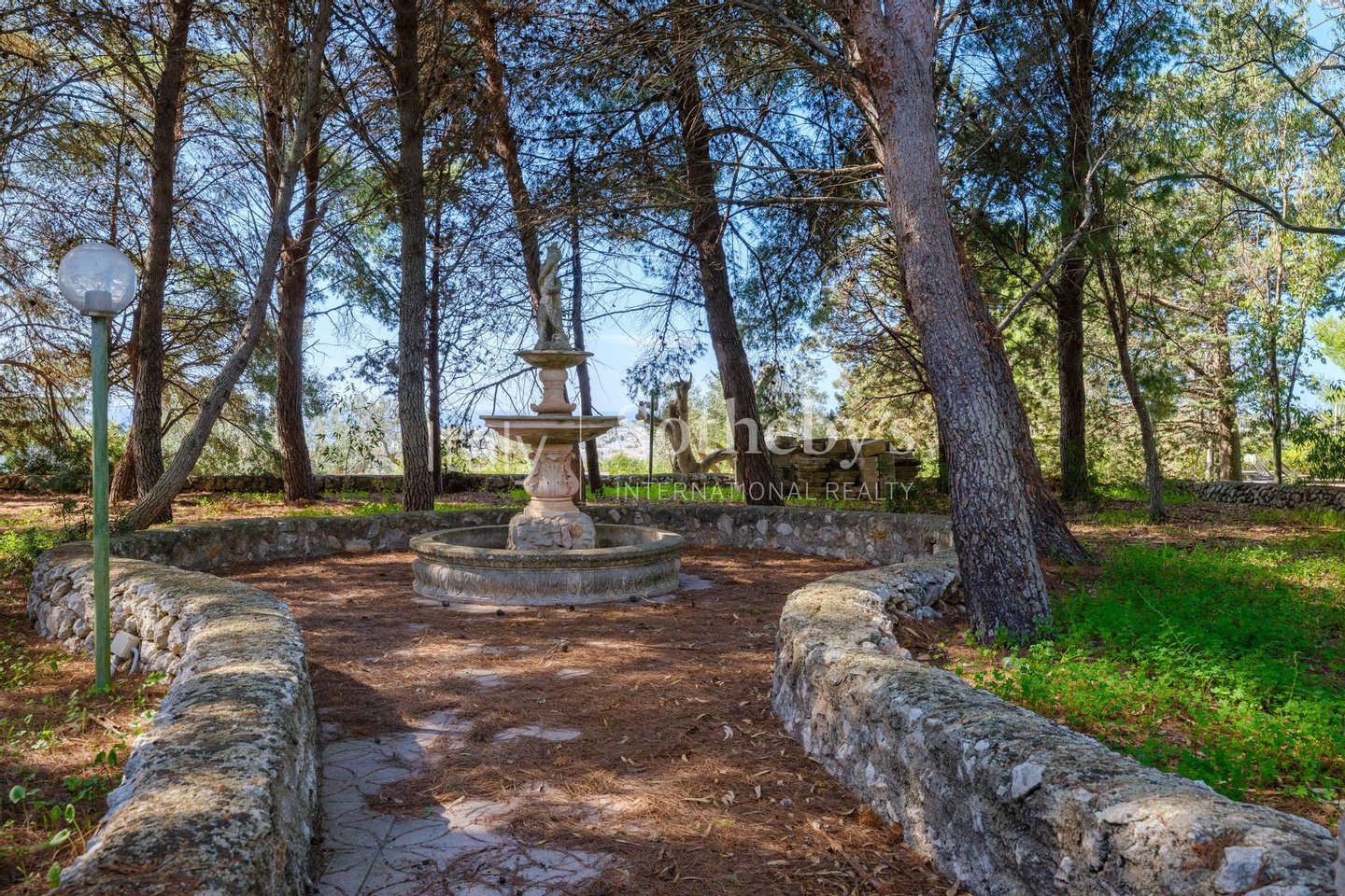 Umgeben auf der einen Seite von Pinien und Tannen und auf der anderen von typischer mediterraner Vegetation mit Olivenbäumen, öffnet sich die Immobilie zu einer großzügigen Panoramaterrasse, von der aus die Magie des Finis Terrae spürbar ist. Hier vermischt sich der harzige Duft der Bäume mit der Meeresbrise und trägt das Rauschen der Wellen sowie das leise Flüstern des Windes durch die Baumkronen heran.