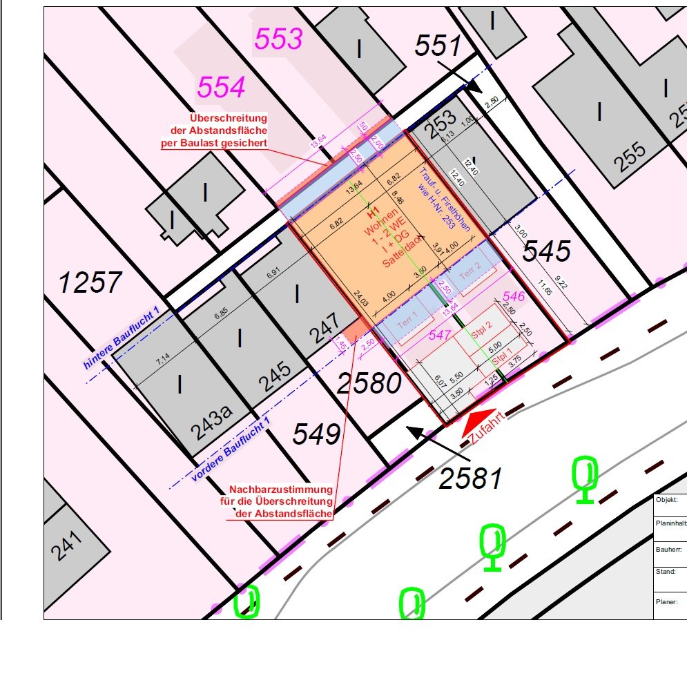Für die Bebauung der hinteren Grundstücke wird empfohlen, einen Bauvorbescheid zu beantragen. Aufgrund der besonderen Möglichkeit, die vier Grundstücke sowie mindestens ein weiteres angrenzendes Grundstück zu erwerben, ergeben sich vielversprechende Chancen für eine weitergehende Bebauung.