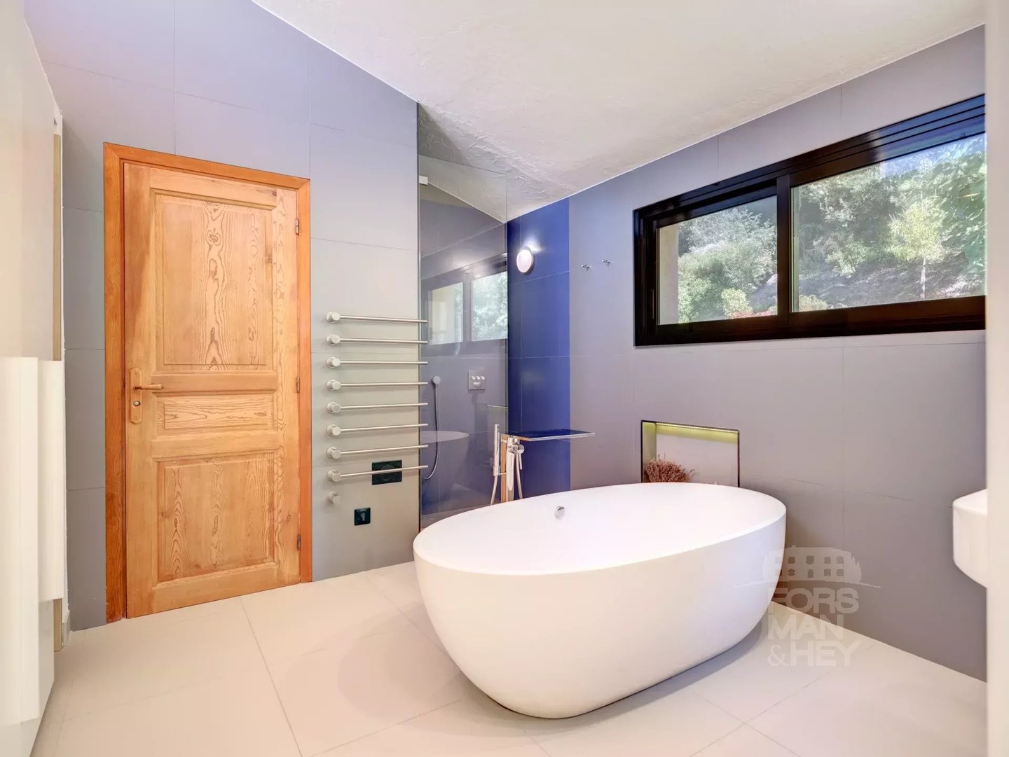 This property is located close to the charming village of Biot, in the heart of a highly sought-after residential area. Bathed in natural light, it sits in a commanding position of absolute tranquillity. Designed by an architect, it boasts a unique