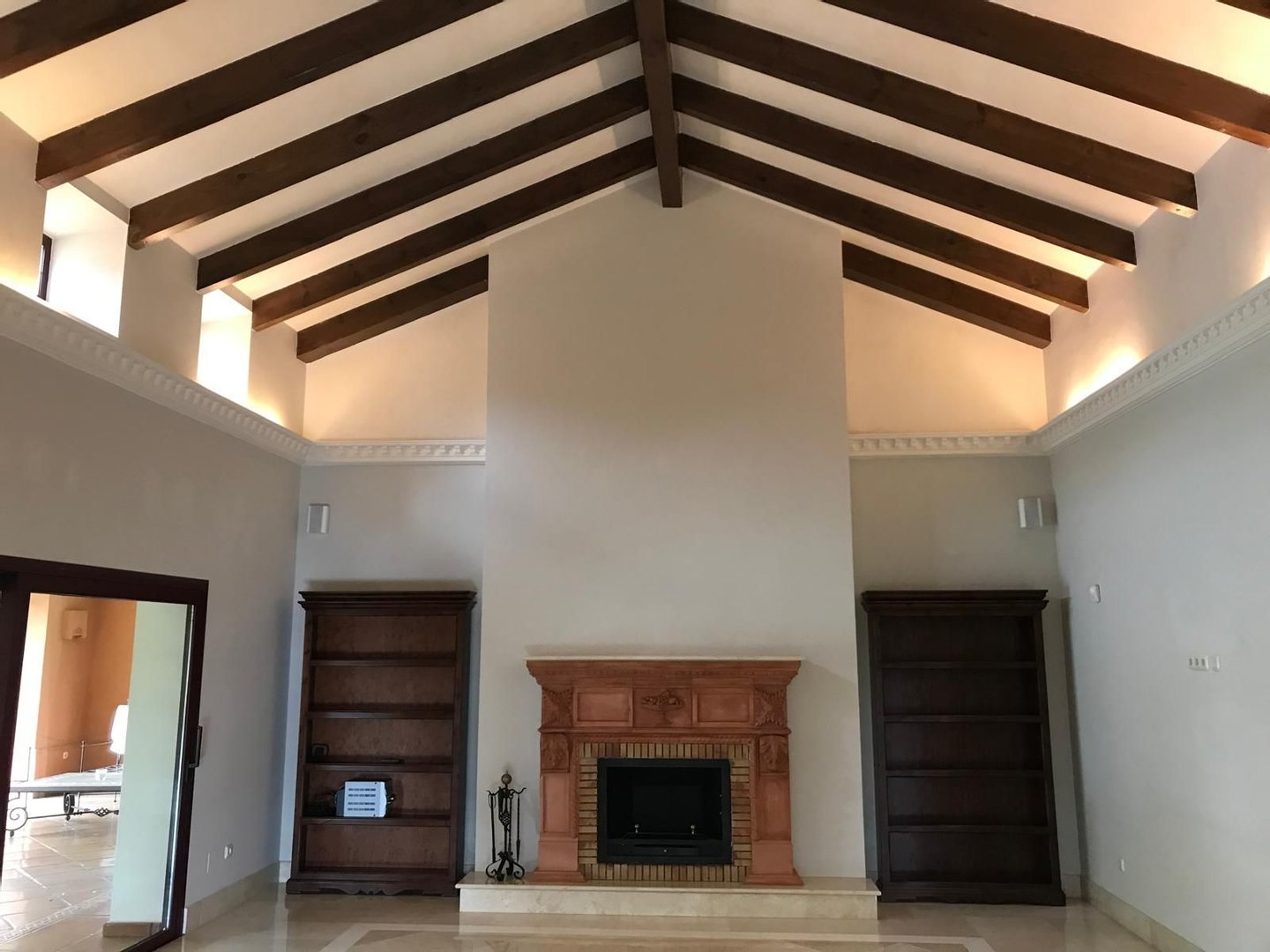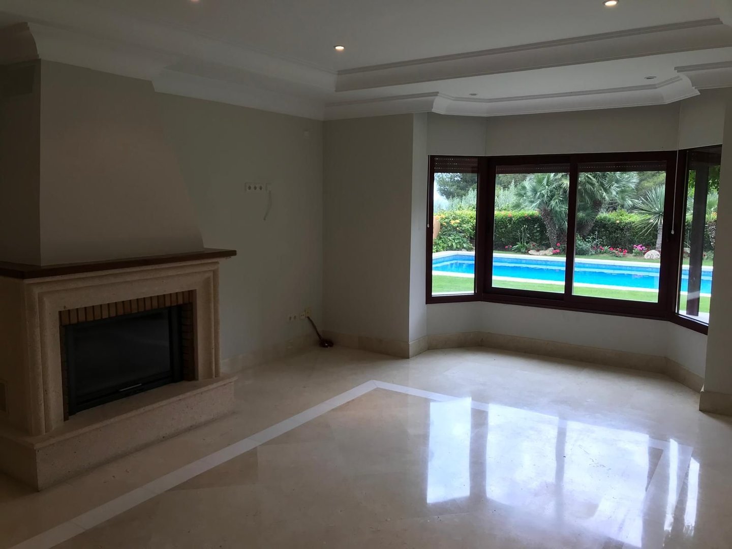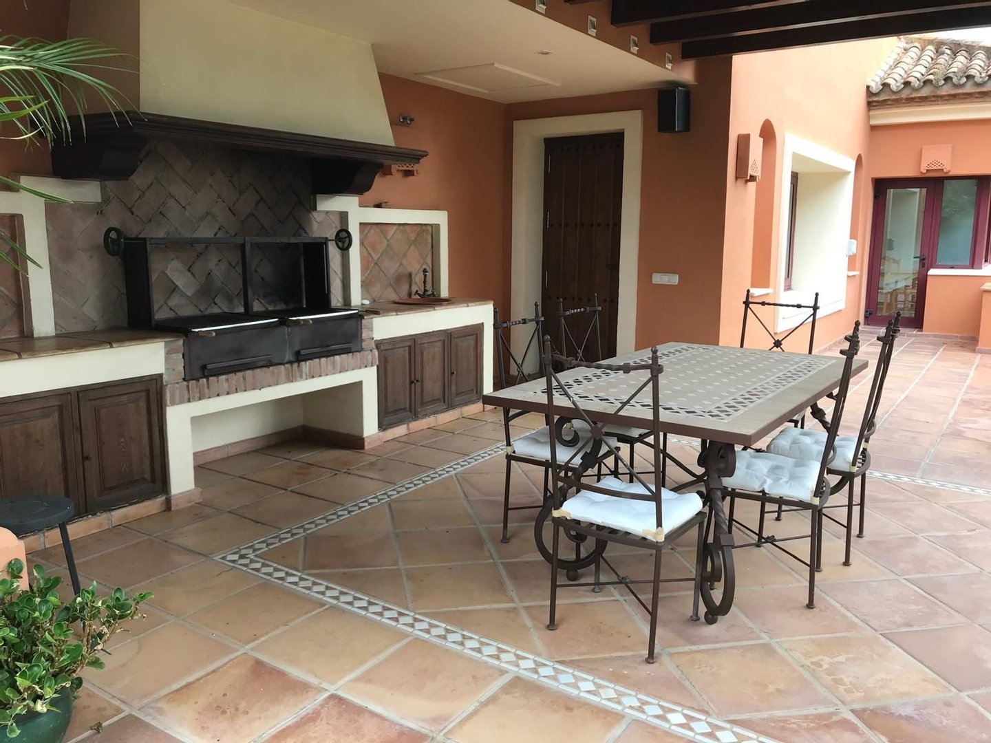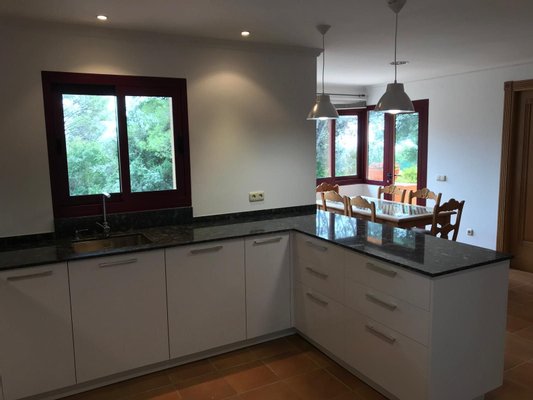 Erdgeschoss: Wohn-Esszimmer mit Kamin, Büro, TV-Lounge mit Kamin, Schlafzimmer mit begehbarem Kleiderschrank und komplettes Badezimmer mit Dusche und Hydromassage-Badewanne. Separate Küche mit Frühstücksbereich, Waschküche, Bügelraum, Speisekammer, Gästetoilette und überdachter Veranda. Draußen: privater Pool, angelegter Garten und Außentoilette.