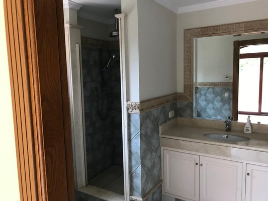 Obergeschoss: Drei Schlafzimmer mit eigenem Bad sowie ein großes viertes Schlafzimmer mit der Möglichkeit, ein Badezimmer hinzuzufügen. Mehrere Terrassen mit Aussicht.
