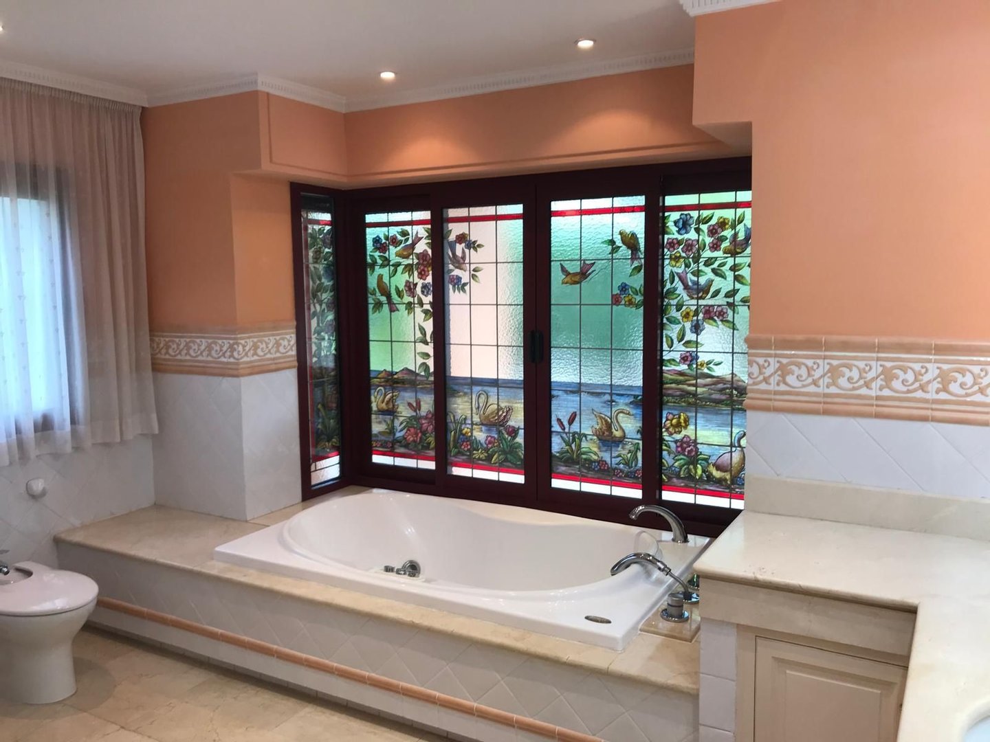 Das Anwesen verfügt über 5 Hauptschlafzimmer, mehrere Wohnzimmer mit Kaminen, Fußbodenheizung, einen privaten Pool mit Hydromassage, Alarmanlage, elektrische Rollläden, eine geräumige Garage für mehrere Fahrzeuge und eine breite Palette von Komfort. Es ist nur wenige Minuten vom Strand und der Innenstadt von Marbella entfernt.