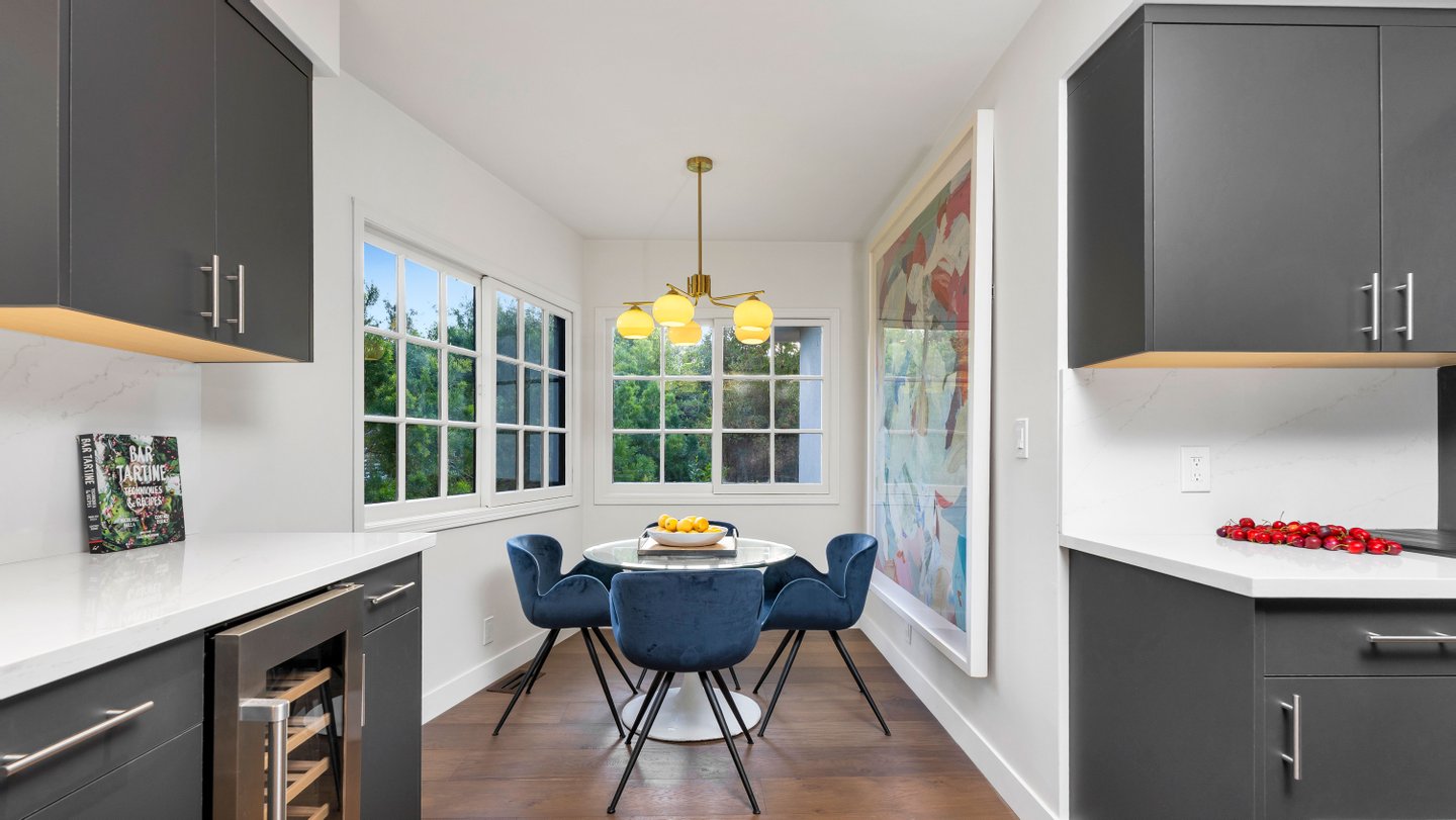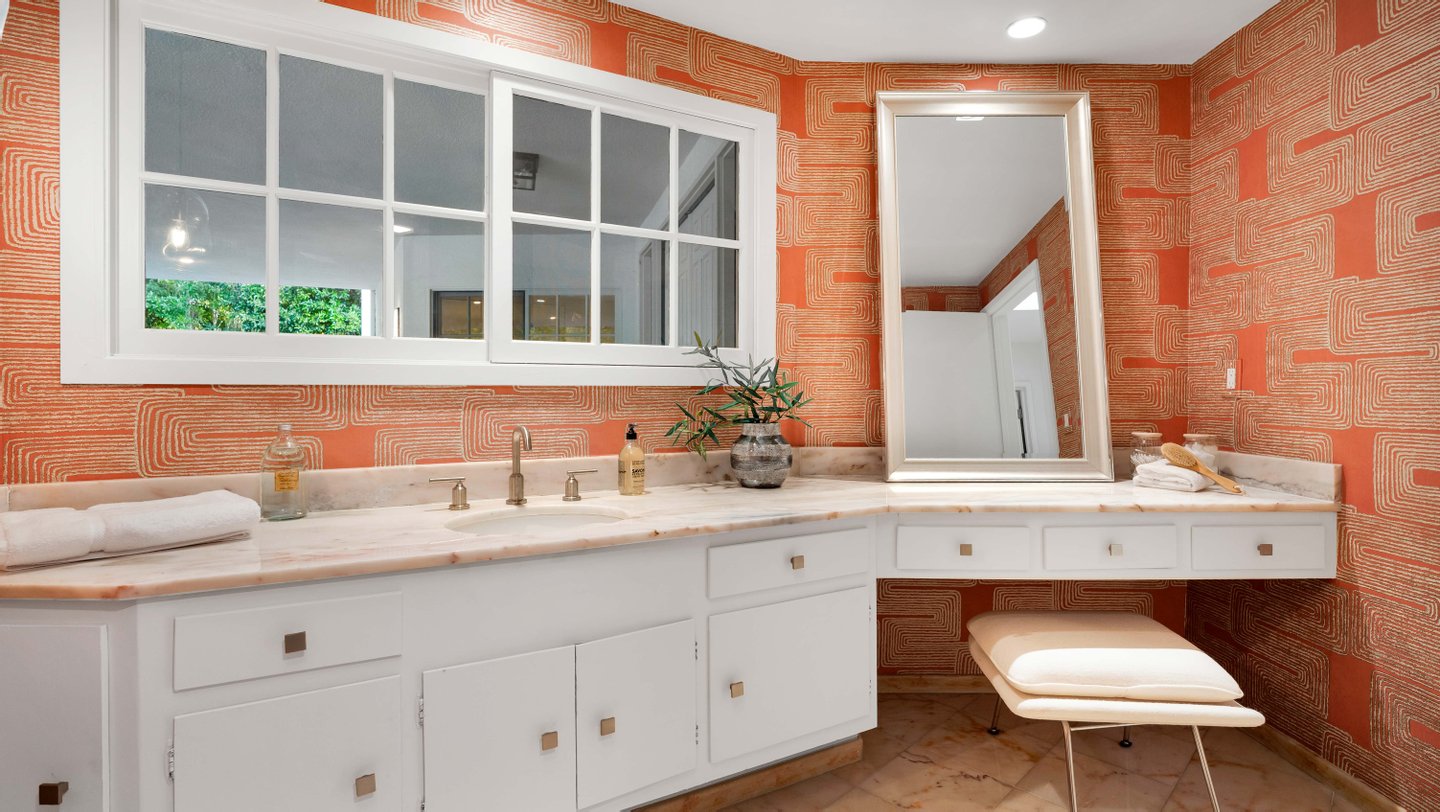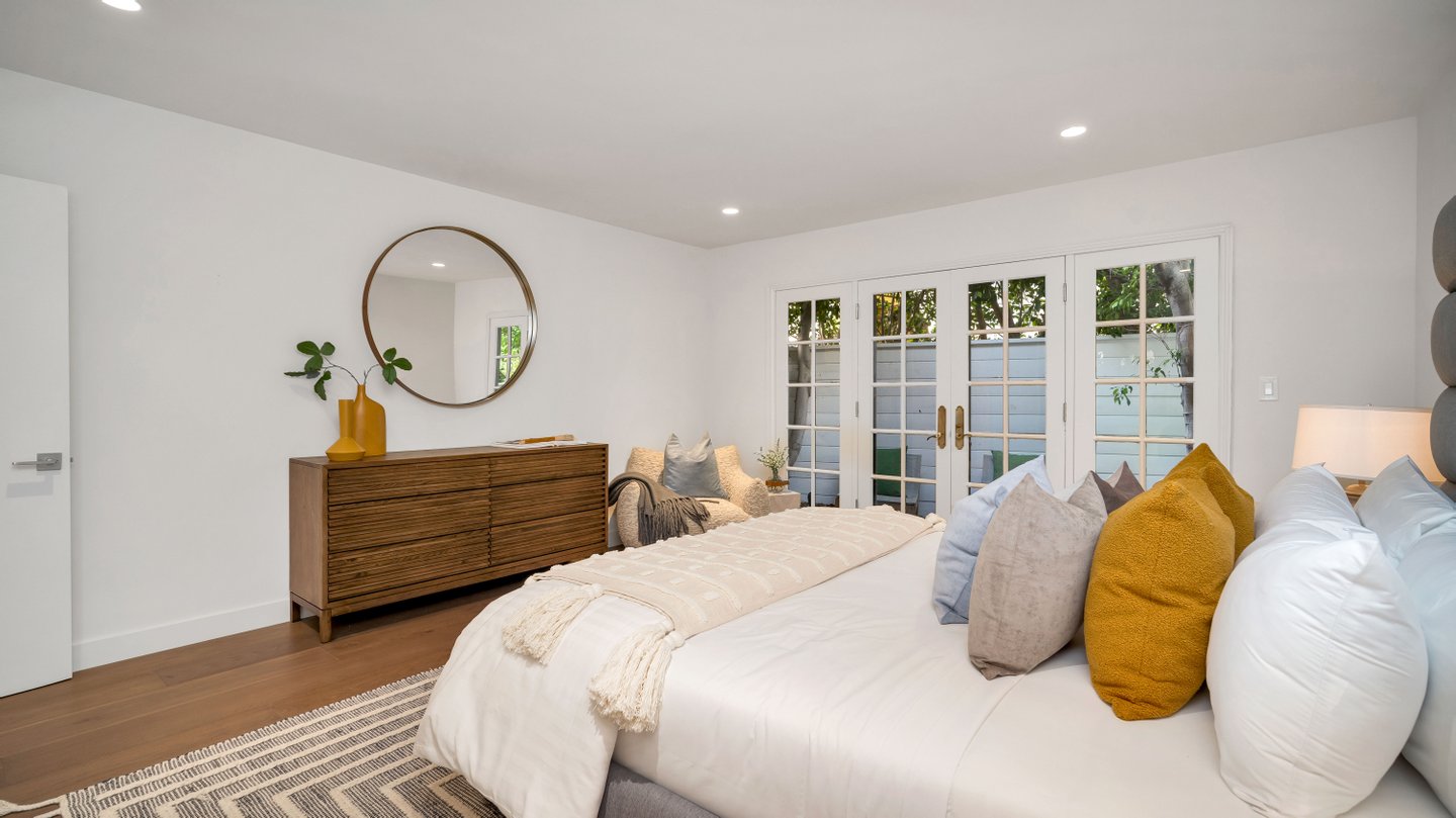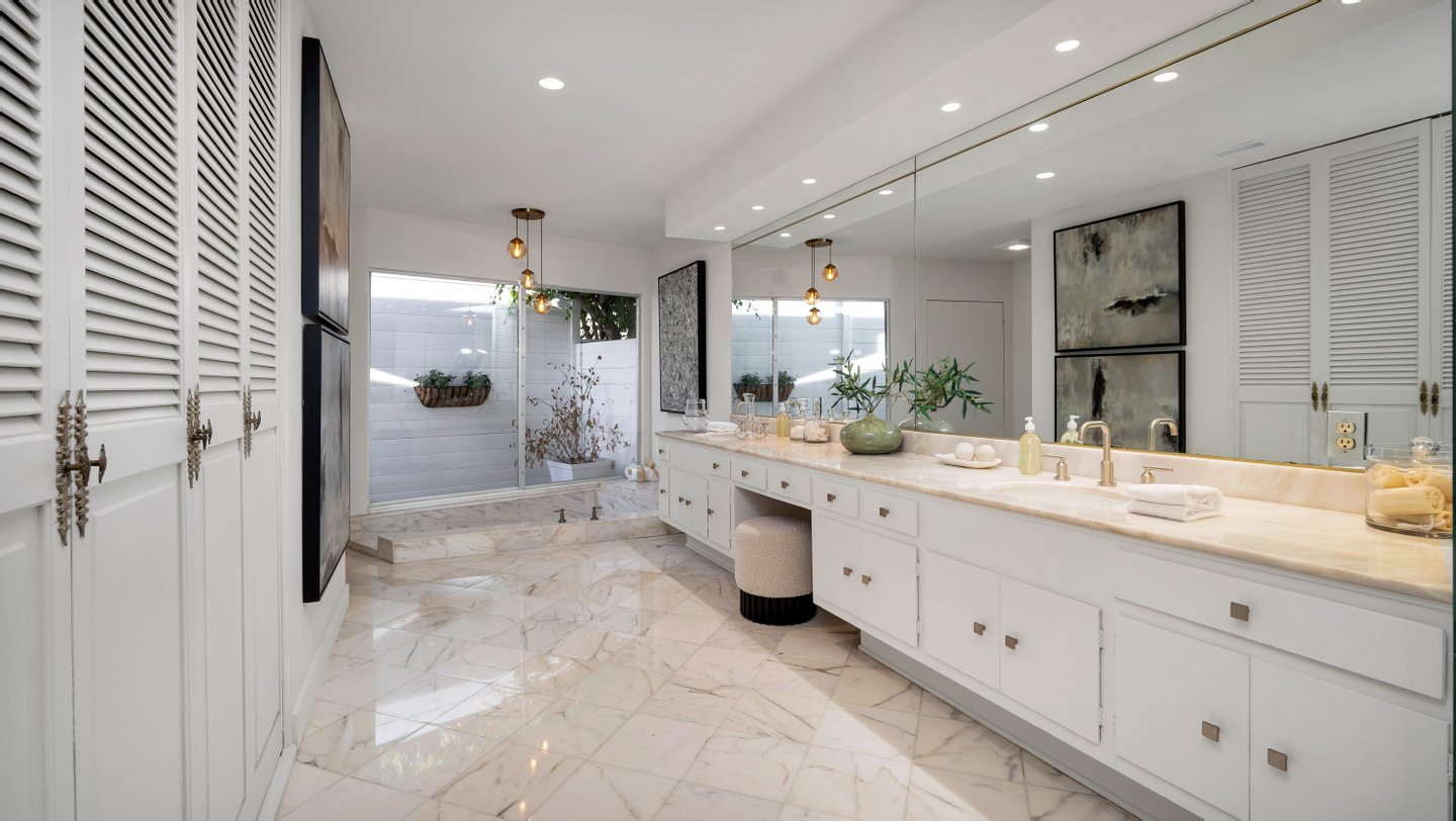 Eingebettet in eine der begehrtesten Enklaven der Angelo Drive verbindet dieses meisterhaft renovierte Mid-Century-Wohnhaus klassische Architektur der 1960er Jahre mit modernen modernen Modernisierungen, die sorgfältig integriert sind, um den Mid-Century-Charakter des Hauses zu bewahren. An einer abgelegenen Straße gelegen, nur wenige Augenblicke oberhalb des Sunset Blvd, bietet das Anwesen unvergleichliche Privatsphäre und ruhige Ausblicke auf die Baumwipfel. Wunderschön neu gestaltet, umfasst der etwa 3.400 Fuß große Grundriss 4 Schlafzimmer und 4 verfeinerte Bäder, mit großen, sonnengefüllten Wohnräumen, eingerahmt von restaurierten französischen Türen und übergroßen Fenstern. Ein tiefer, umlaufender Balkon verbindet Wohnzimmer, Esszimmer und Hauptsuite und schafft so einen nahtlosen Fluss zwischen drinnen und draußen. Die sonnengewaschene Küche des Kochs verfügt über eine großzügige Insel mit Steindecke, hochwertige Edelstahlgeräte, maßgefertigte Schränke und eine sonnenbeschienene Frühstücksnische. Die Hauptsuite öffnet sich direkt zur Terrasse und bietet einen ruhigen Gartenblick sowie ein spa-inspiriertes Bad mit dramatischen Steinfinishen, eine große begehbare Dusche und eine tiefe, absteigende Badewanne. Kuratierte Verbesserungen umfassen neue Böden, renovierte Badezimmer, Designerbeleuchtung, aufgefrischte Oberflächen und verbesserte Systeme. Das Gelände umfasst eine ausgewachsene Landschaftsanlage, eine großzügige Terrasse zum Essen und Entspannen sowie einen breiten Motorplatz mit überdachten Parkplätzen. Ein elegantes, zentrales Rückzugsort aus der Mitte des Jahrhunderts in einem der diskretesten Bereiche von BHPO – mit Privatsphäre, architektonischem Charme und mühelosem Zugang zu Beverly Hills, Holmby Hills und der erstklassigen Warner Avenue Elementary.