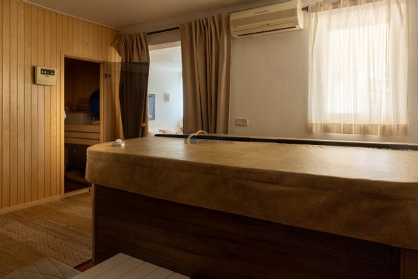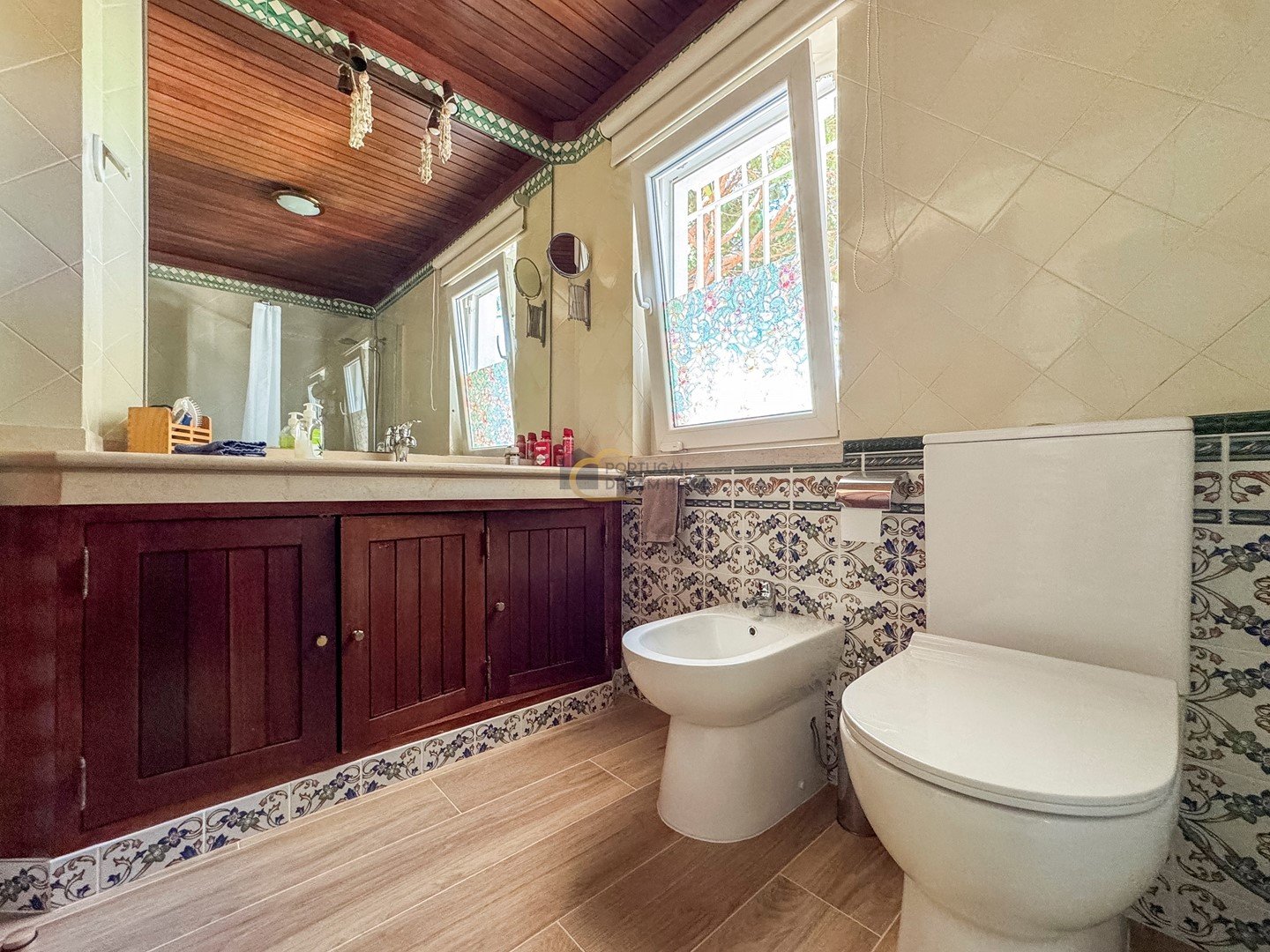 Ausgestattet mit Klimaanlage in allen Räumen, Warmwasserbereitung, 300-Liter-Thermospeicher und einem eigenen Bohrloch, das den Garten und den Pool versorgt, vereint dieses Haus Komfort und Effizienz. + Wärmepumpe mit Heizkörpern in allen Räumen und Bädern