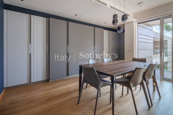 Die Immobilie ist mit Geschmack und höchster Liebe zum Detail eingerichtet und verfügt über Möbel von renommierten Marken wie Cassina, Molteni und Dada sowie über hochwertige Haushaltsgeräte von Miele und Gaggenau. Ein hochmodernes Smart-Home-System ergänzt die Ausstattung. Die Räume sind großzügig geschnitten, hell und harmonisch proportioniert und bieten einen zeitgemäßen und anspruchsvollen Wohnstil.