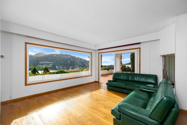 Die Immobilie bietet 148 m² gut gestaltete Wohnfläche auf einer Etage, begleitet von einer großzügigen Terrasse, die das beeindruckende Panorama präsentiert. Ursprünglich als Drei-Zimmer-Wohnung konzipiert, verfügt die Immobilie derzeit über zwei Schlafzimmer, wobei das dritte nahtlos geöffnet wurde, um den Wohn- und Essbereich zu vergrößern. Die Wiederherstellung des zusätzlichen Schlafzimmers ist unkompliziert, sollte der neue Eigentümer dies wünschen.