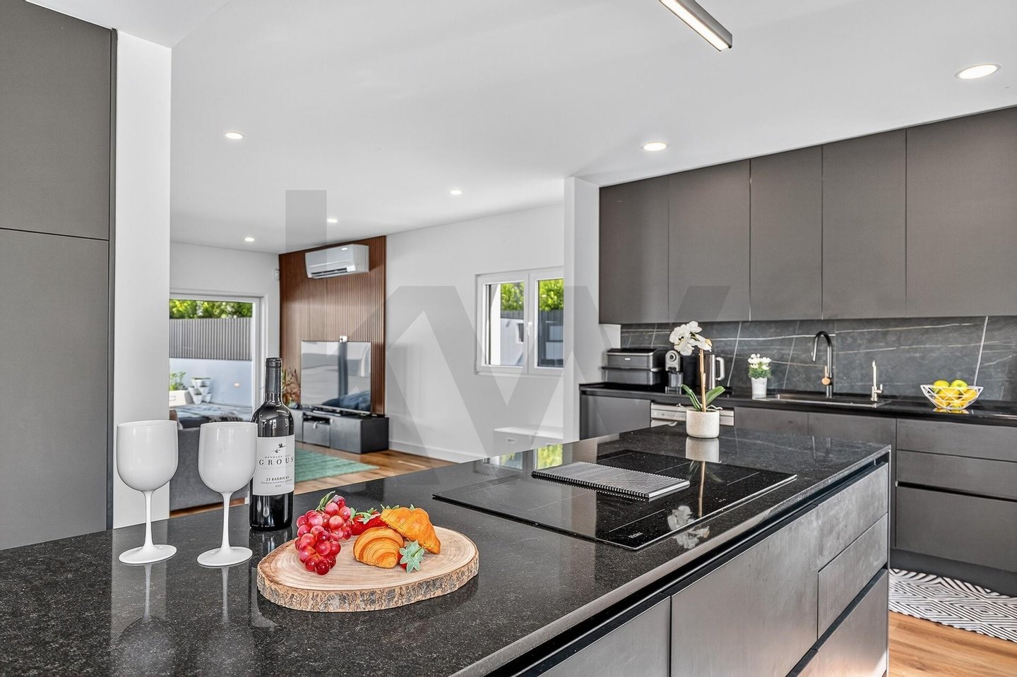 Im prestigeträchtigen Viertel Verdizela entsteht diese außergewöhnliche Eckvilla, die 2022 vollständig neu errichtet wurde und auf einem der großzügigsten und privatesten Grundstücke der Gegend mit einer Fläche von 1.474 m² liegt. Das weitläufige Grundstück, umgeben von reifer Natur und der charakteristischen Ruhe der Gegend, bietet eine seltene Umgebung, in der Ruhe, Raum und Eleganz ein echtes Lebenserlebnis bieten. Nur wenige Minuten von den Stränden von Fonte da Telha und Costa da Caparica entfernt garantiert dieses Anwesen eine perfekte Balance zwischen Wohlbefinden, Exklusivität und Meeresnähe.