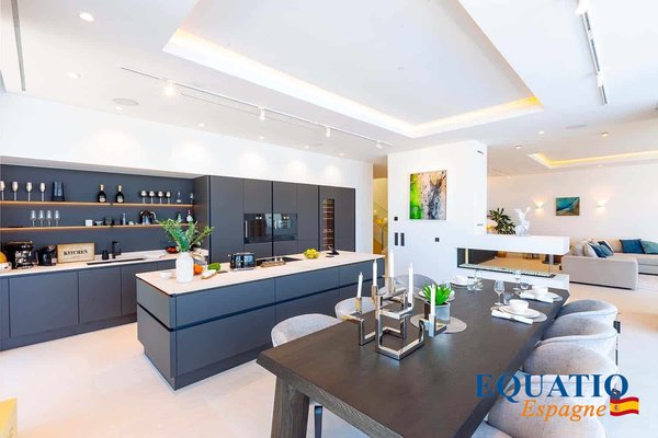 Located in Port Andratx and on the heights of Cala Llamp, MAGINFIQUE Modern Villa with Elevator SOLD FURNISHED, offering a PANORAMIC VIEW of the Sea and the Mountain Large sliding windows to make the most of the natural light and the INCREDIBLE VIEWS. HUGE Main Room for the living room, the dining room with Fireplace and the fully fitted American kitchen equipped with high-end appliances. 6 comfortable bedrooms with dressing room, 6 bathrooms. Closed Garage + Indoor Parking Several Relaxation / Chill-Out Area and Outdoor Summer Kitchen . . . LARGE Salt Water Infinity Pool with its Jacuzzi ♂️ area EXCEPTIONAL location for this very Beautiful Villa which is also close to the Golf Course