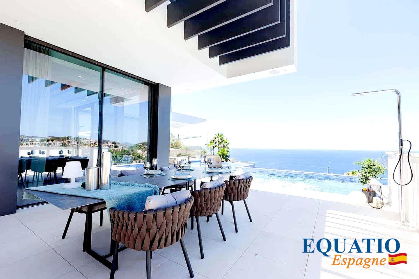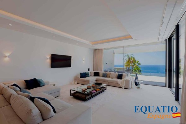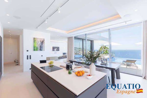 Located in Port Andratx and on the heights of Cala Llamp, MAGINFIQUE Modern Villa with Elevator SOLD FURNISHED, offering a PANORAMIC VIEW of the Sea and the Mountain Large sliding windows to make the most of the natural light and the INCREDIBLE