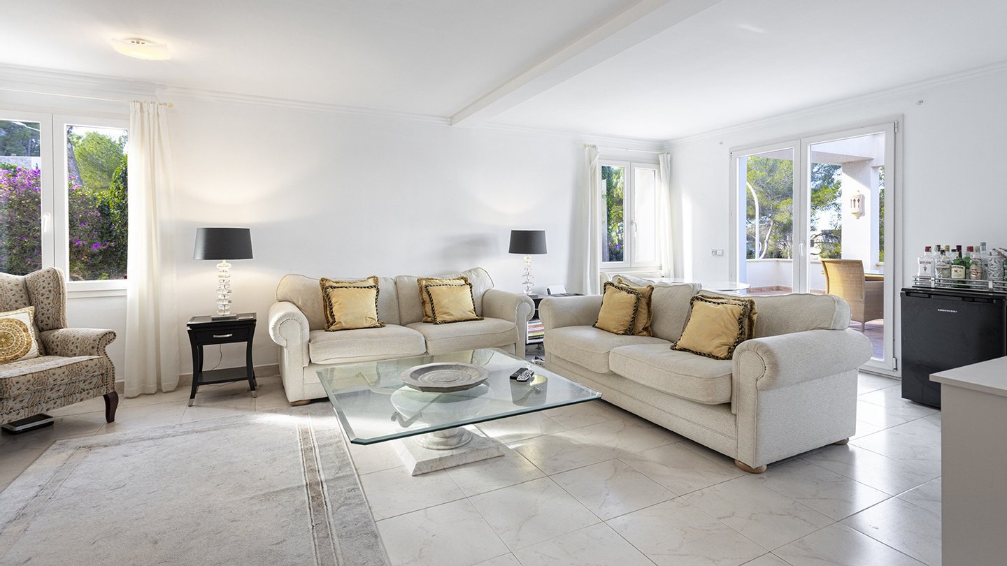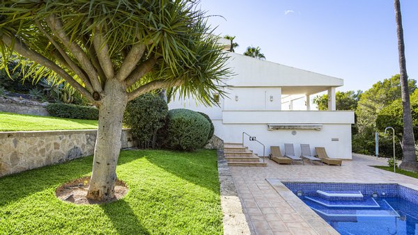 Mallorca-Immobilien: Diese bezaubernde Villa verfügt über mehrere Terrassen, die einen herrlichen Blick auf die Berge und das Meer bieten. Sie liegt in unmittelbarer Nähe der Sandstrände und des Zentrums von Santa Ponsa im Südwesten von Mallorca.