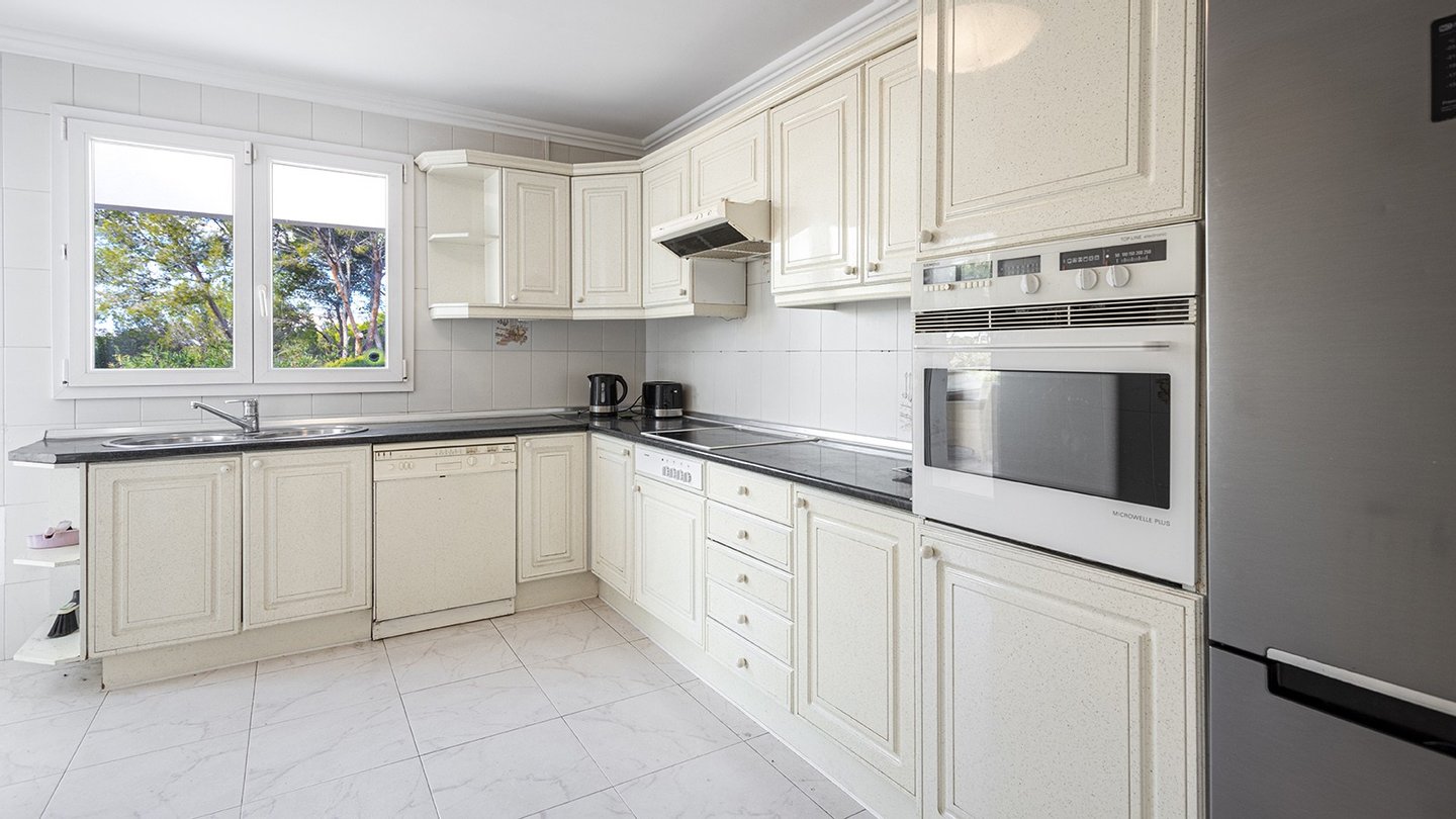 Diese im Jahr 2023 renovierte Villa steht auf einem großzügigen, ca. 1.070 m2 großen Grundstück. Sie erstreckt sich über eine Wohnfläche von ca. 233 m2 und verfügt über einen großzügigen Eingangsbereich, der direkt in das helle Wohnzimmer mit offenem Kamin führt. Von dort aus haben Sie mehrere Zugänge zur sonnigen Terrasse. Die voll ausgestattete Einbauküche mit Elektrogeräten führt zum Essbereich. Außerdem gibt es einen Hauswirtschaftsraum und einen Kellerbereich mit Abstellraum. Es gibt 3 geräumige Schlafzimmer mit Zugang zur Terrasse, von der aus Sie die herrliche Aussicht auf die Berge und teilweise auf das Meer genießen können. Außerdem gibt es Einbauschränke in dem Zimmern und 2 Badezimmer. Die Immobilie ist von einem wunderschönen mediterranen Garten und einem ruhigen Poolbereich umgeben. Weitere Merkmale dieser mediterranen Perle sind: Fliesenboden, Klimaanlage w/k, Ölzentralheizung, doppelt verglaste PVC Fenster mit PVC Blenden, automatisches Bewässerungssystem, Lounge Chillout, Grillplatz, Ankleidezimmer, eine Garage mit elektrischem Tor und 2 PKW-Stellplätze, sowie Alarm- und Gegensprechanlage.